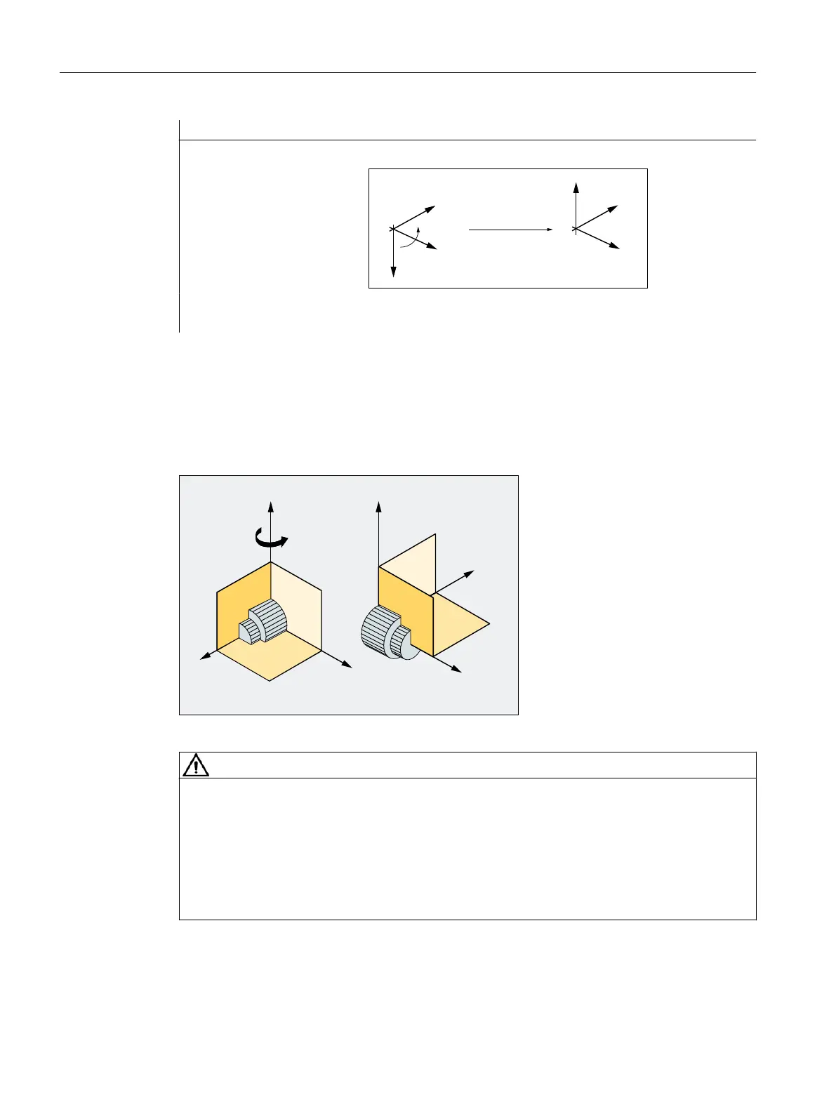 If a plane change (G17, G18, G19) is programmed after a rotation, the current angles of