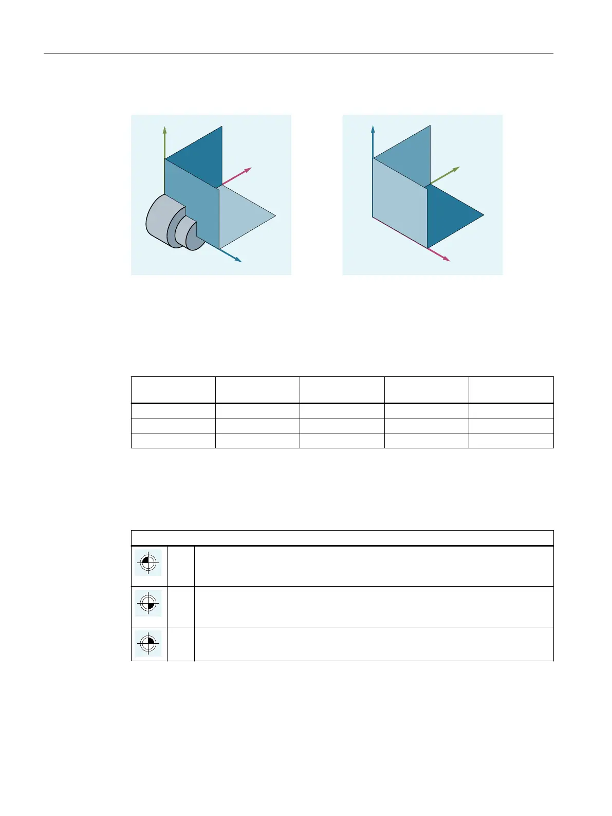 G command Machining plane Abscissa Ordinate Applicate ≙ infeed