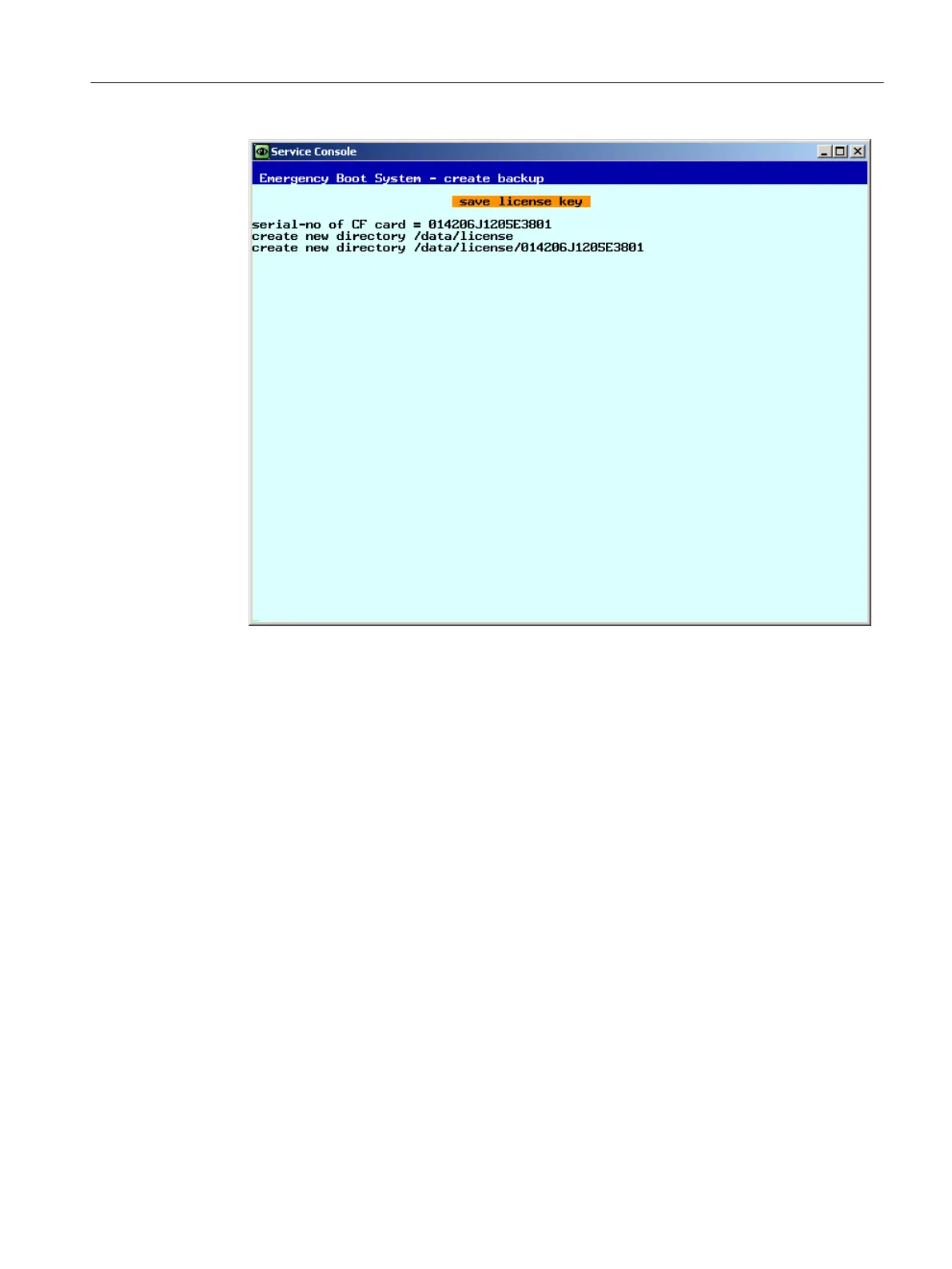 The license key is backed up in the specified directory together with the serial number of the