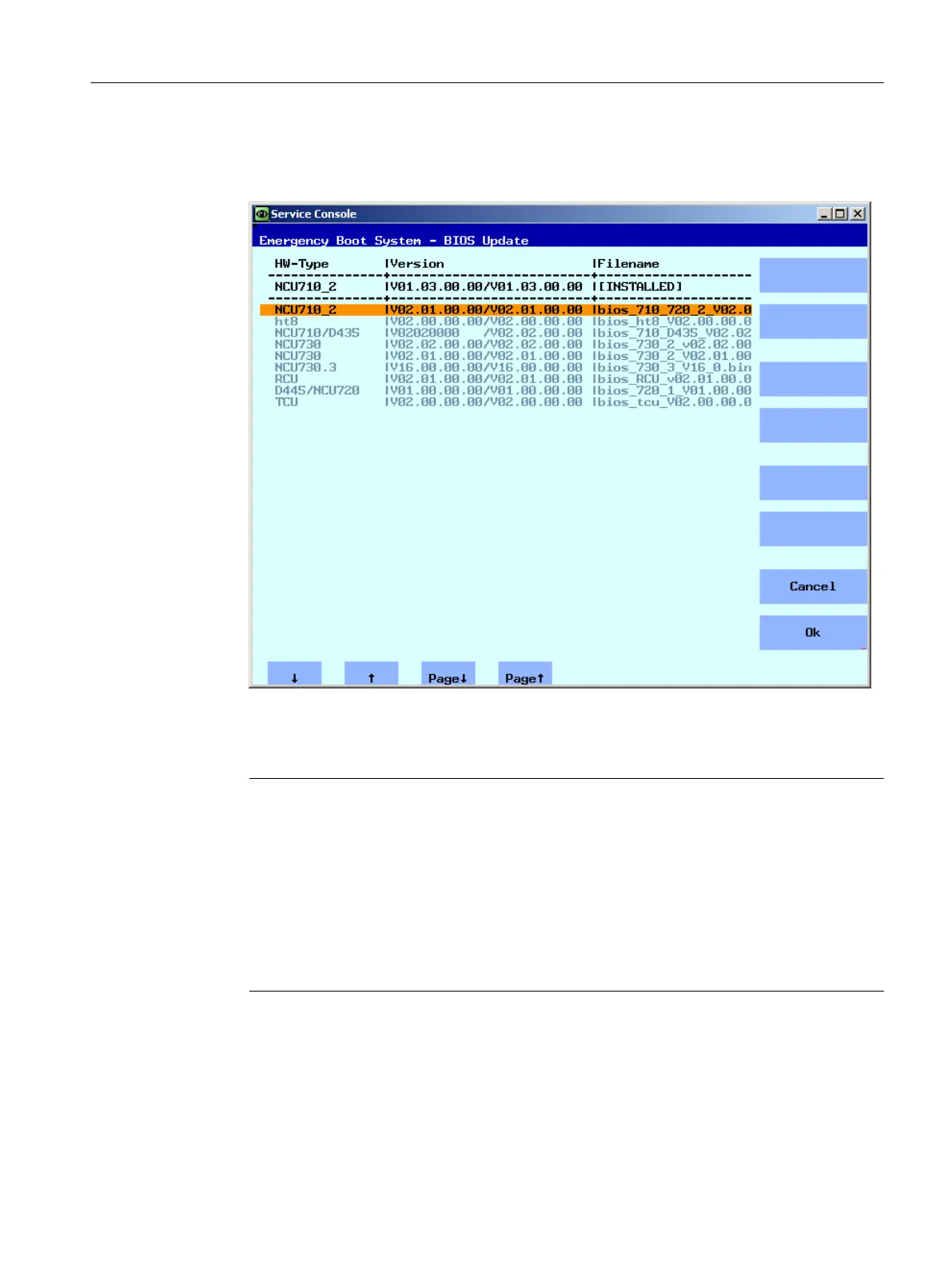 The firmware version installed on the NCU and the update files on the service system are