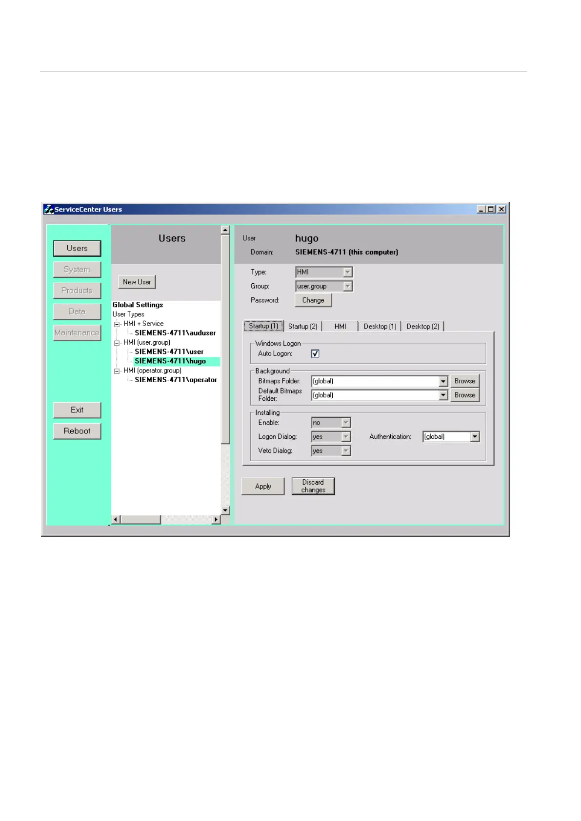 Figure 1-8 Specific settings for the "HMI (user.group)" user