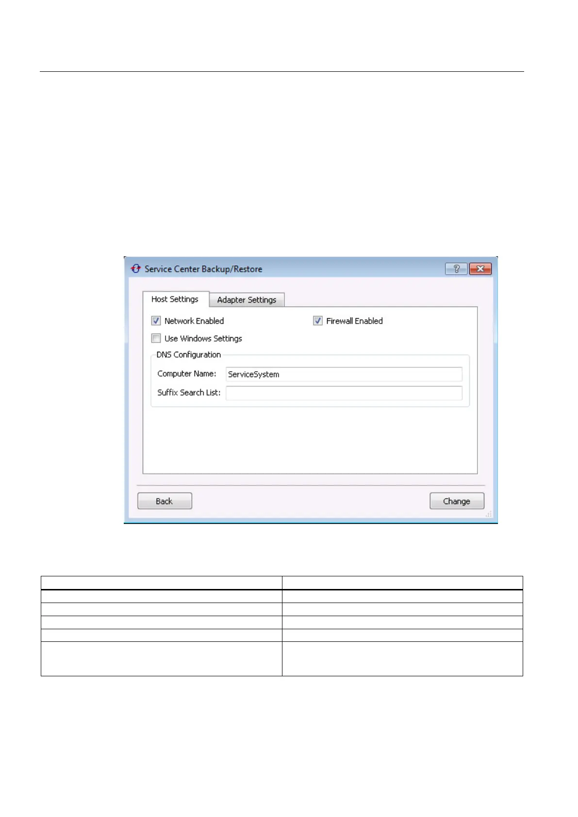 configuration, in contrast to the settings in the "Network Settings" dialog box of the Service