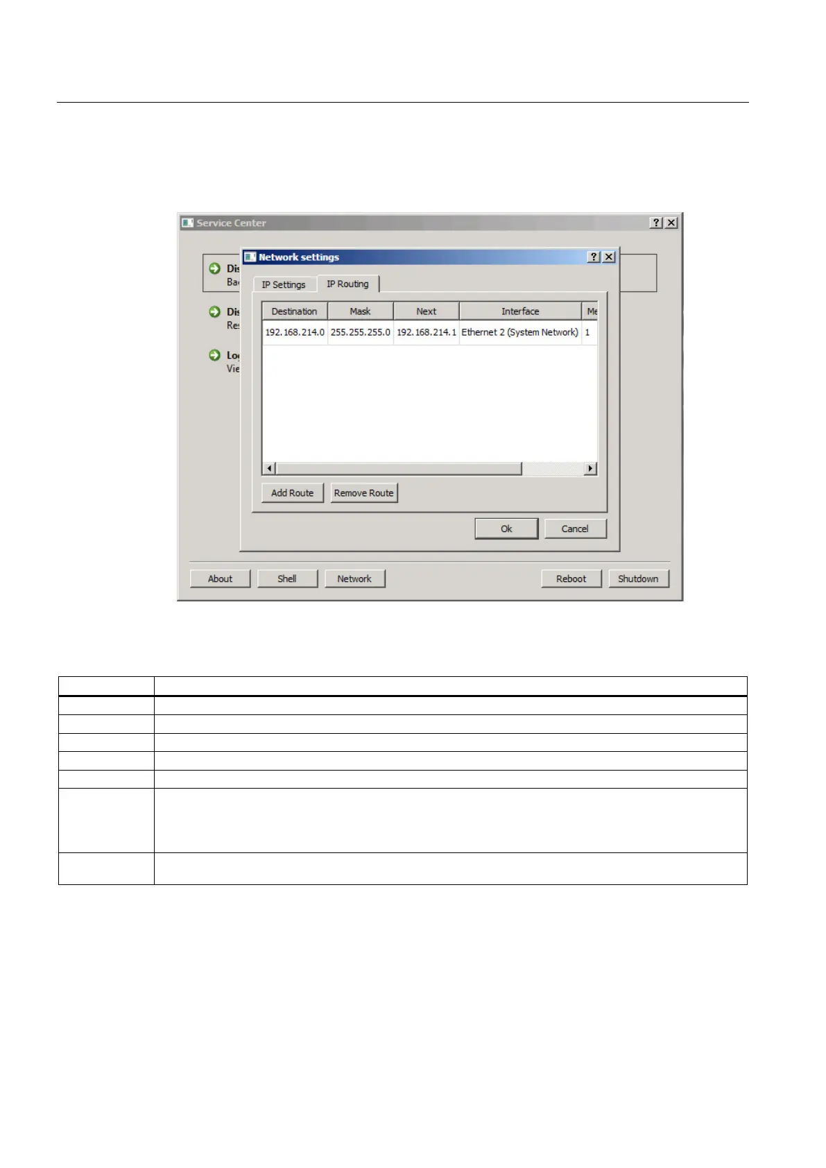 Table 4- 3 Routing settings in the "Network Settings" dialog box