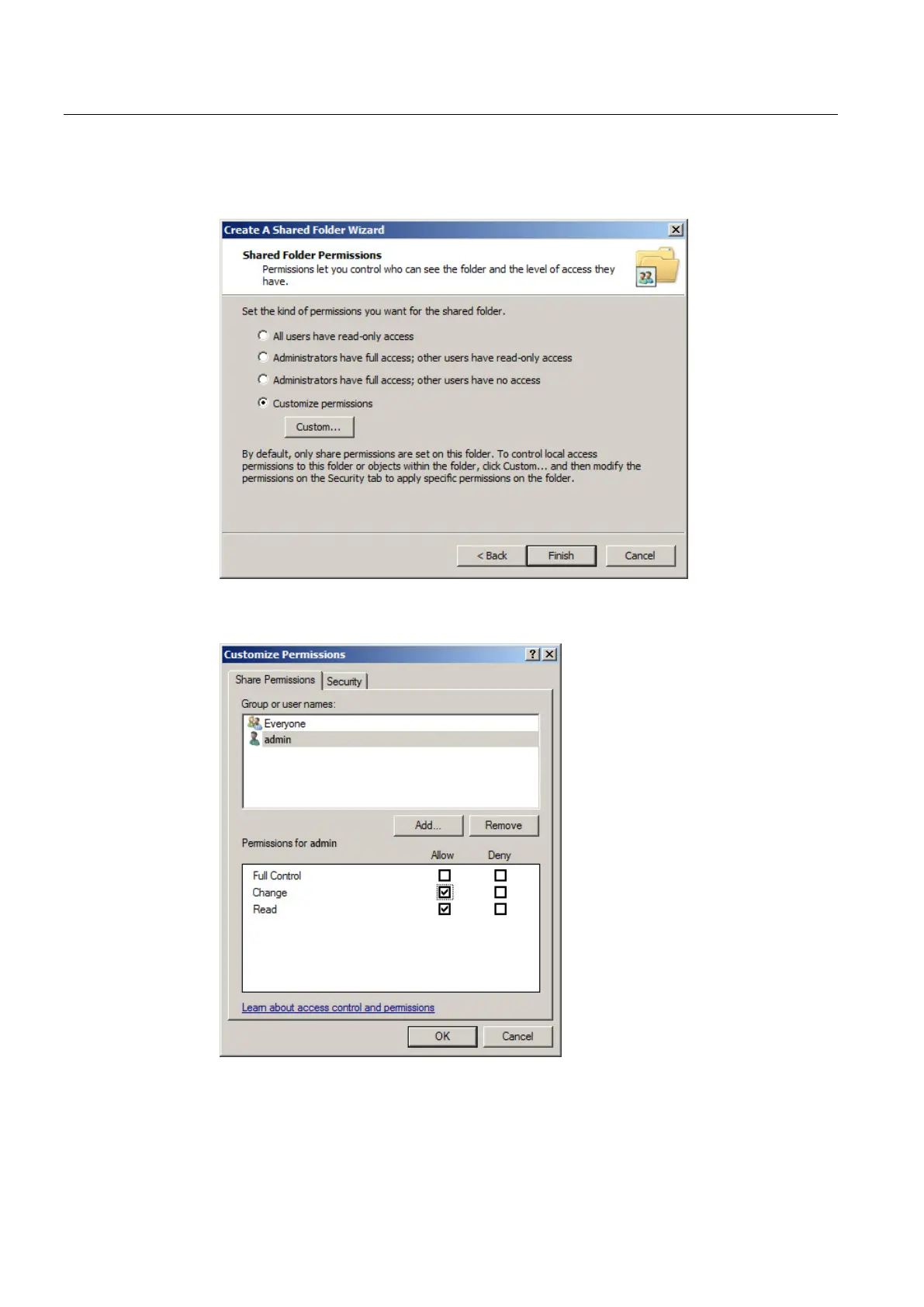 Figure 4-15 Create a Shared Folder Wizard - Shared Folder Authorizations