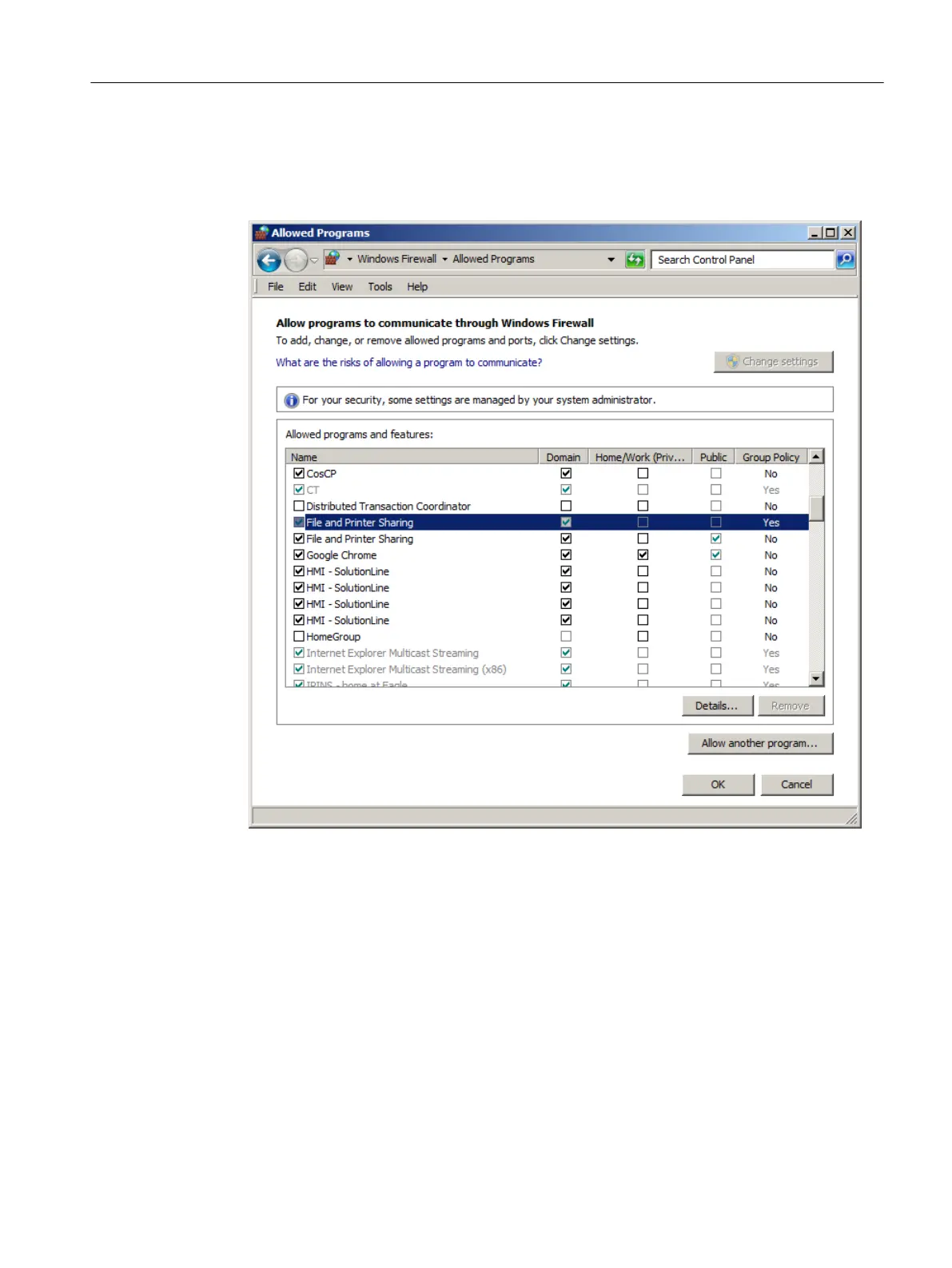 5. Activate the corresponding checkbox for the corresponding entry "File and Printer Sharing"