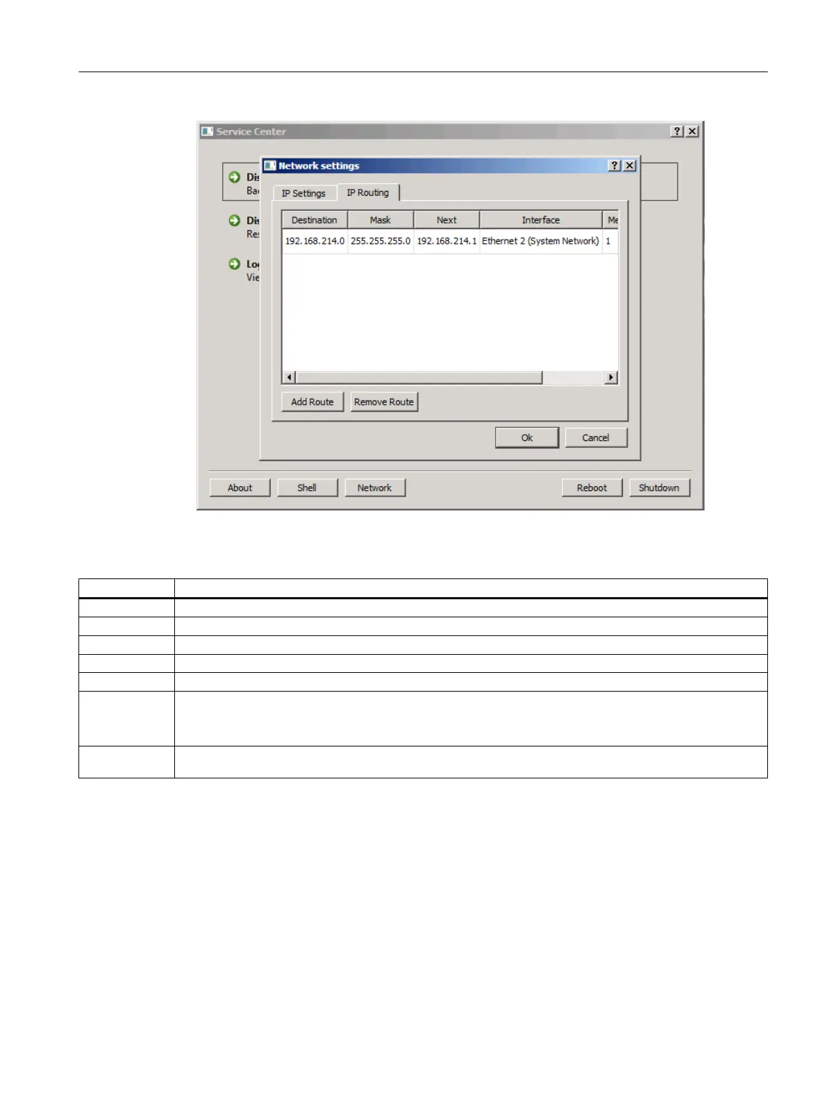 Table 6-3 Routing settings in the "Network Settings" dialog box