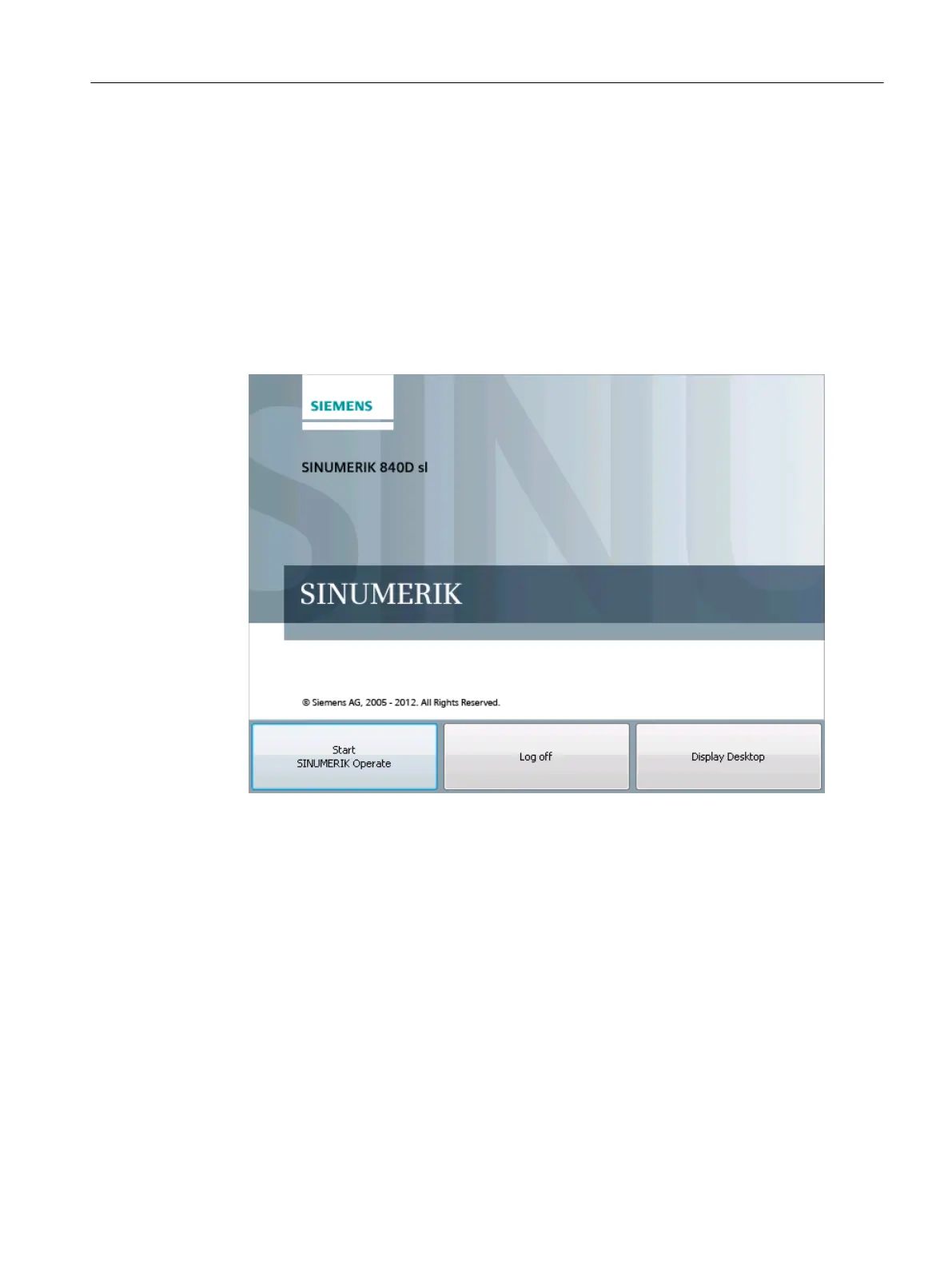 1. Switch on the PC system and wait until the "SINUMERIK" welcome screen is displayed.