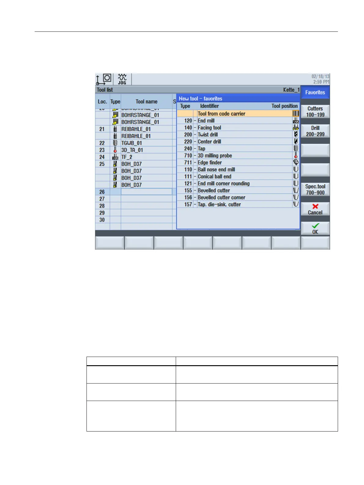 window. Click OK to create the tool in the NC and to initialize it with the code carrier data.