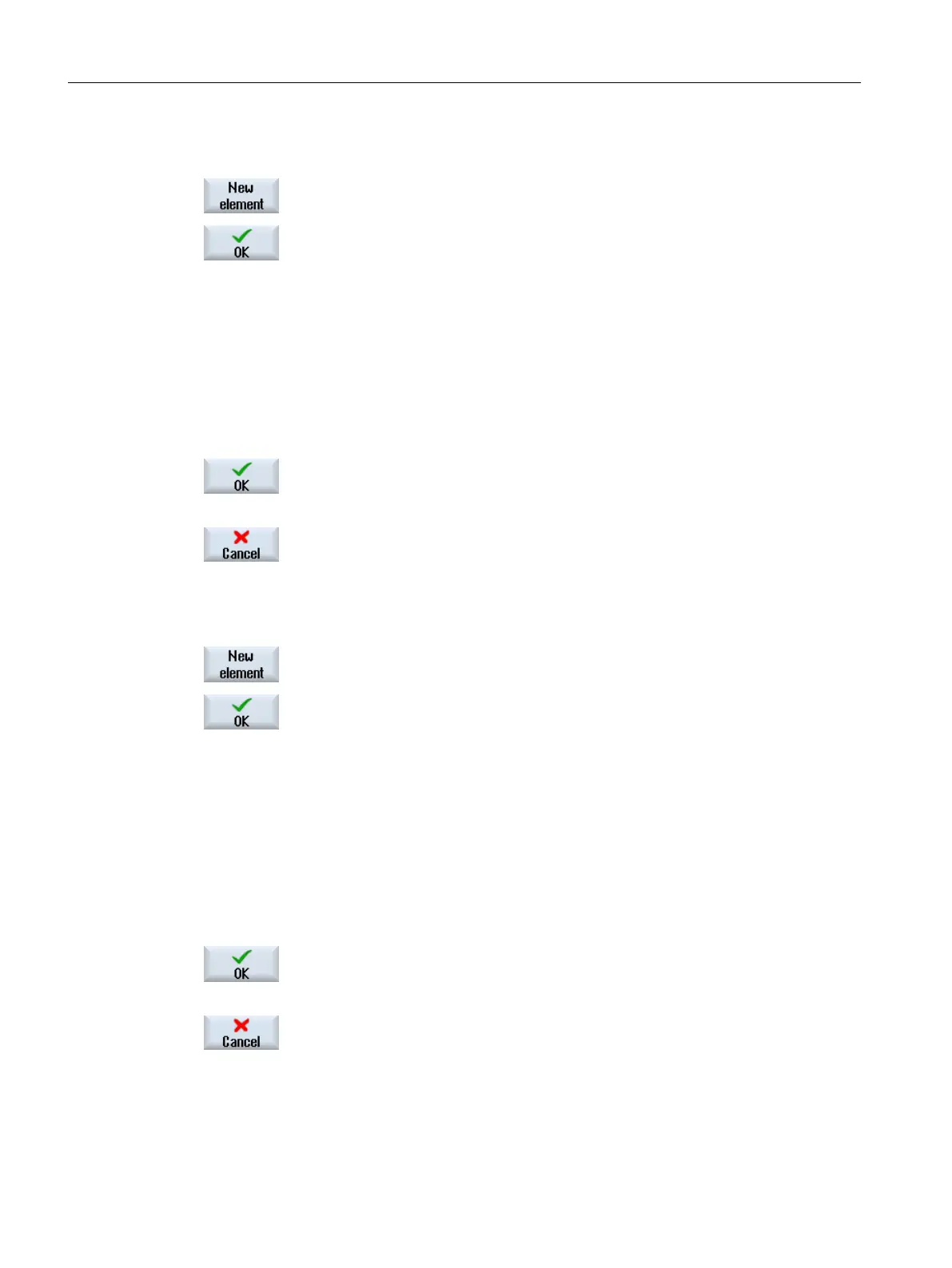 1. Mark the "X axis" kinematic element and press the "New element" softkey.