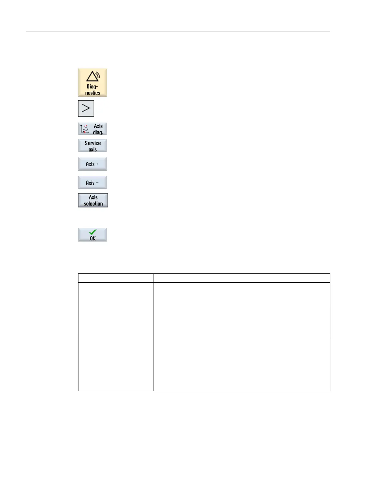 Press the menu forward key and the “Axis diagnostics" softkey.