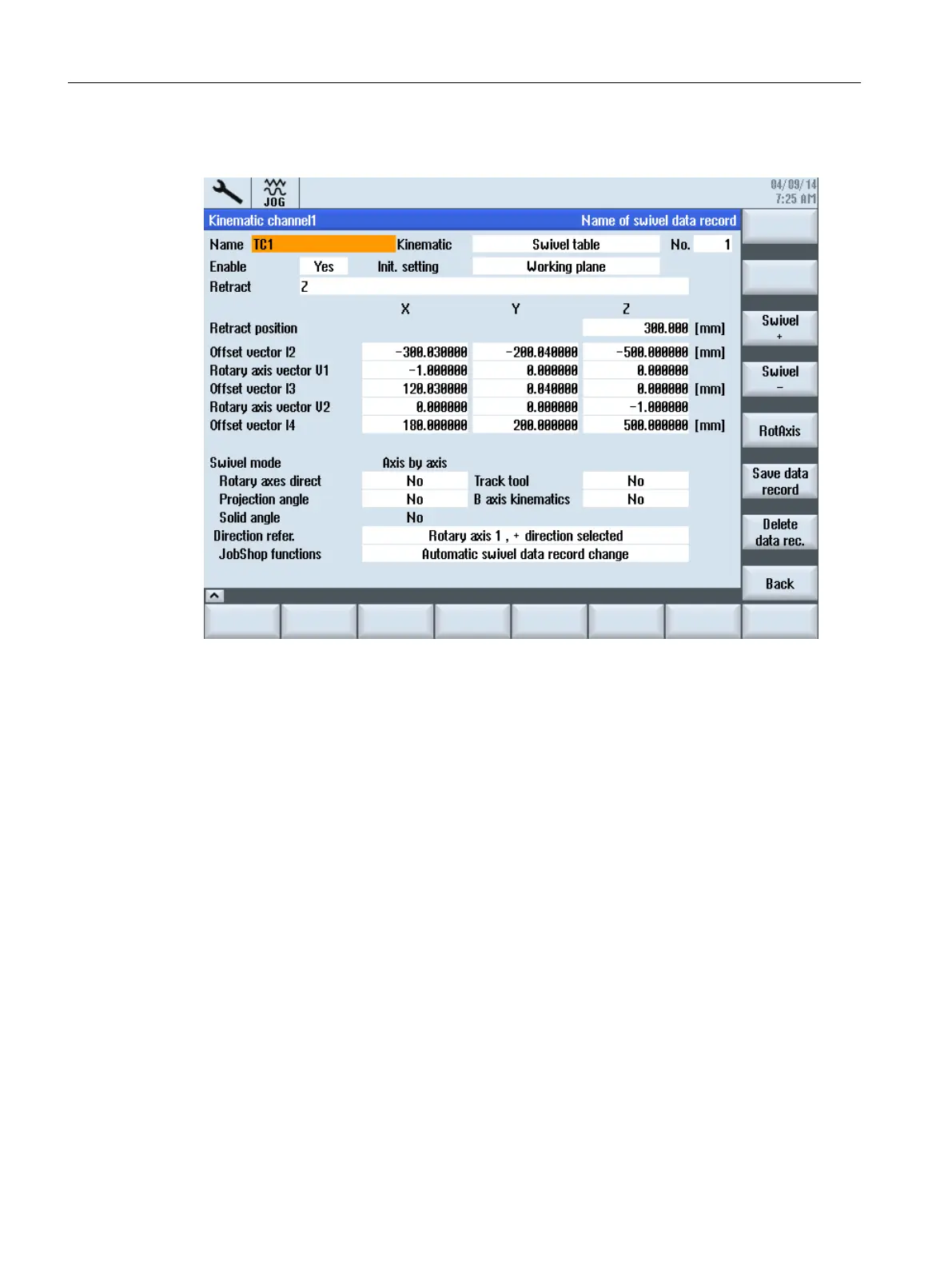 If several swivel data sets are declared in each NC channel, then a name is assigned to each