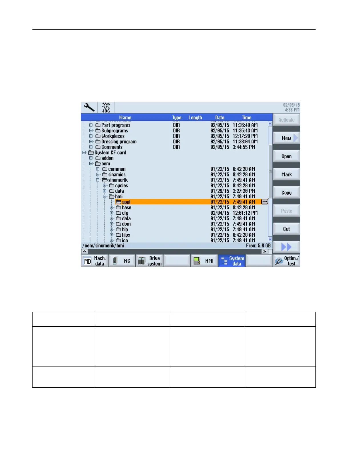 The figure below shows the manufacturer’s folder "System CF-Card/oem/sinumerik/hmi" on