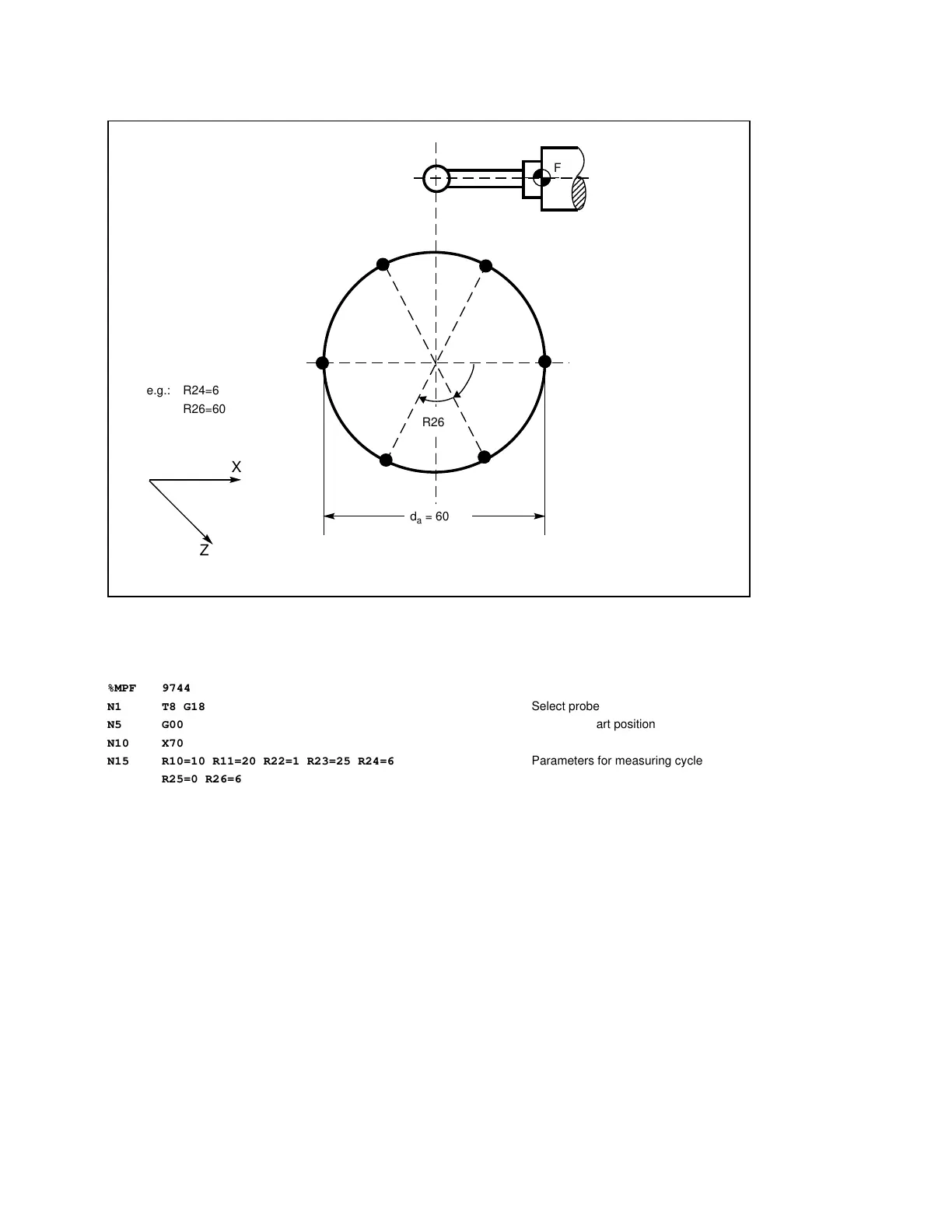 N15 R10=10 R11=20 R22=1 R23=25 R24=6 Parameters for measuring cycle