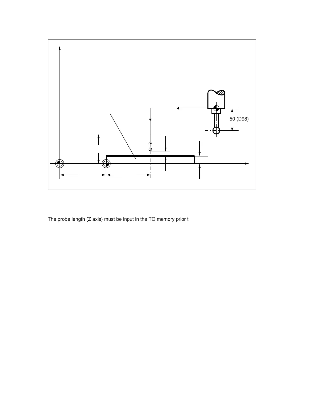 The probe length (Z axis) must be input in the TO memory prior to cycle call, e.g. D98 (in this