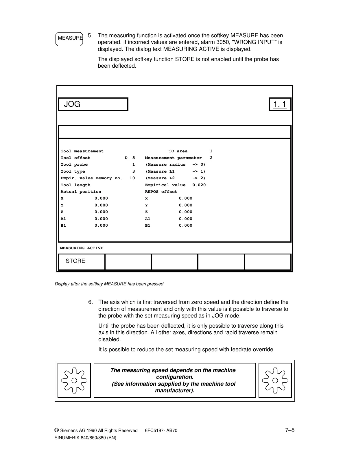 01.93 7 Measuring in JOG Mode (SINUMERIK 880/880 GA2)