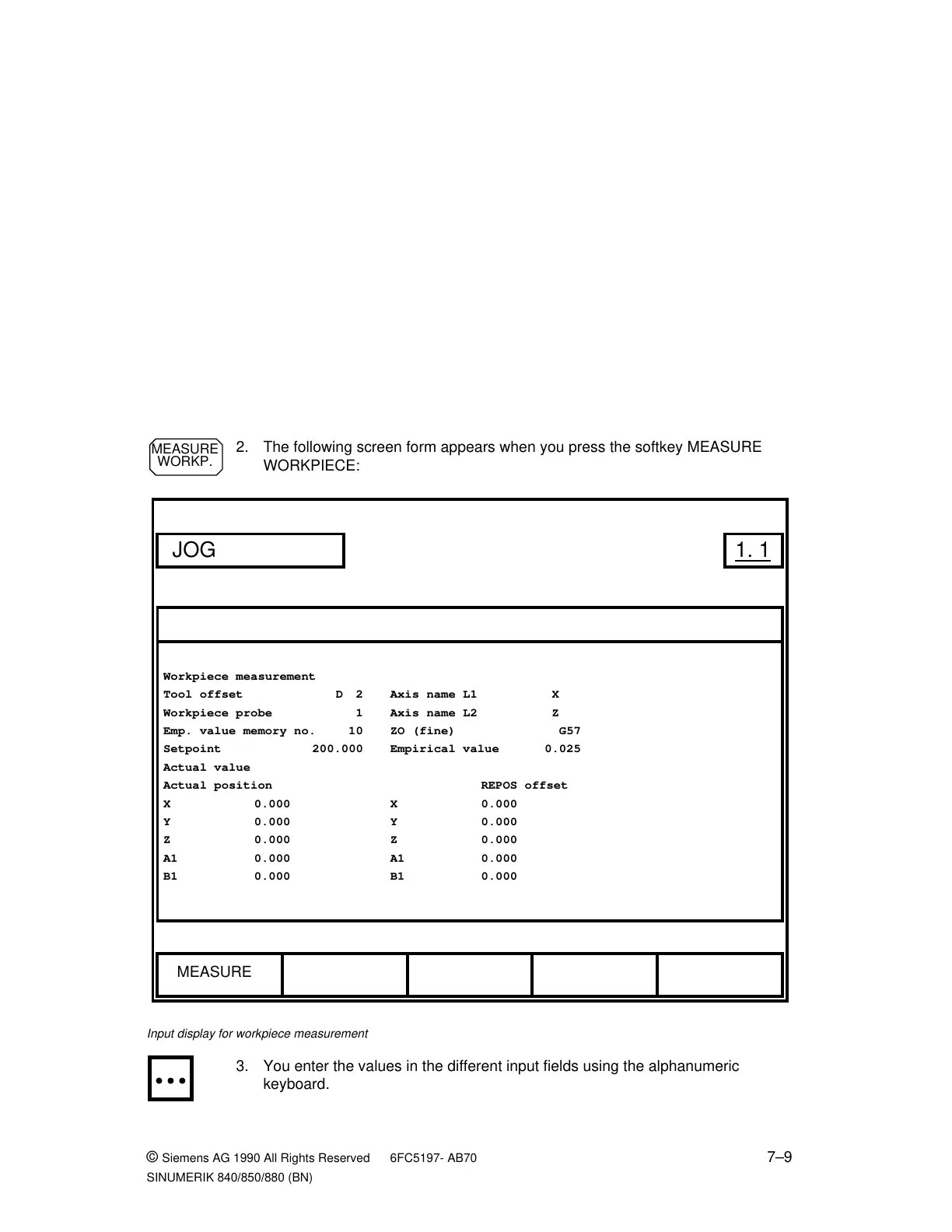 08.96 7 Measuring in JOG Mode (SINUMERIK 880/880 GA2)