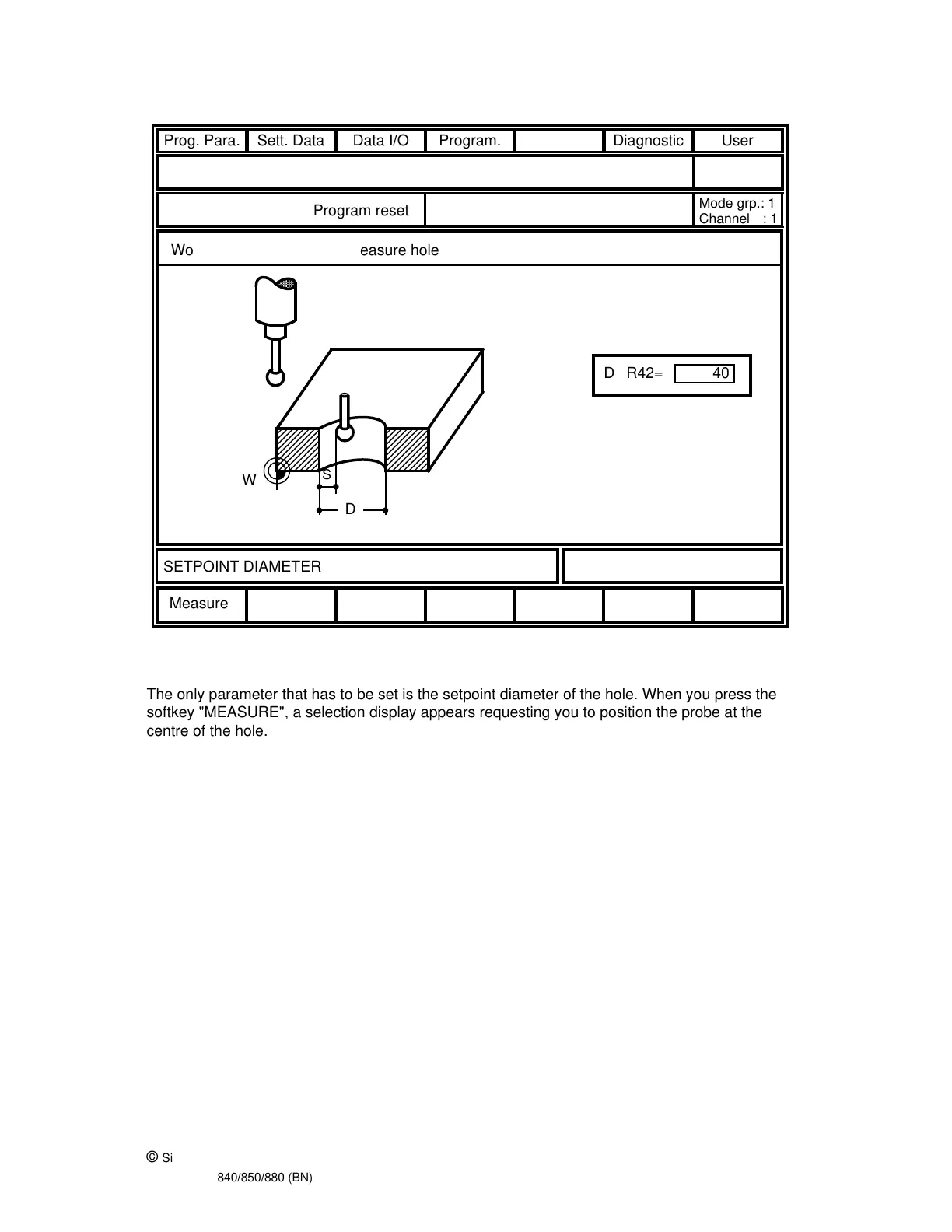 Siemens SINUMERIK 880 - Measuring a Hole