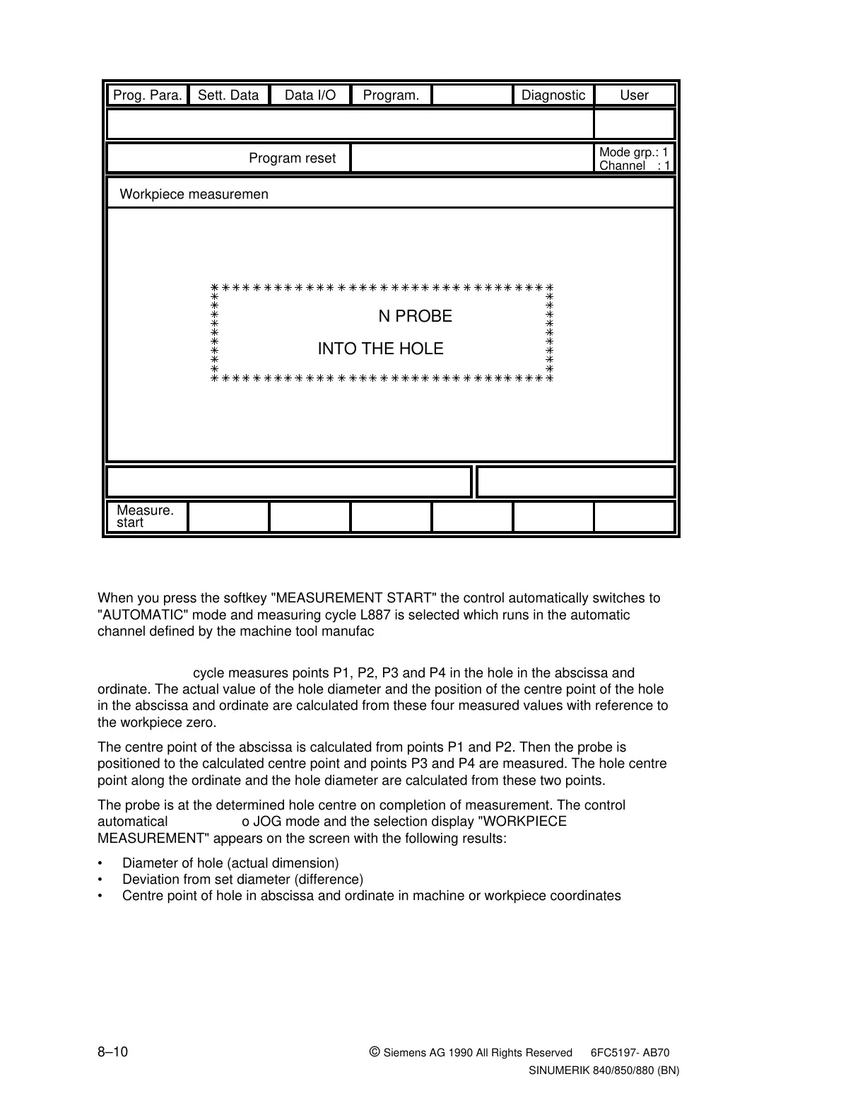 8 Automatic Workpiece Measurement in JOG Mode (SINUMERIK 840 SW2) 08.96