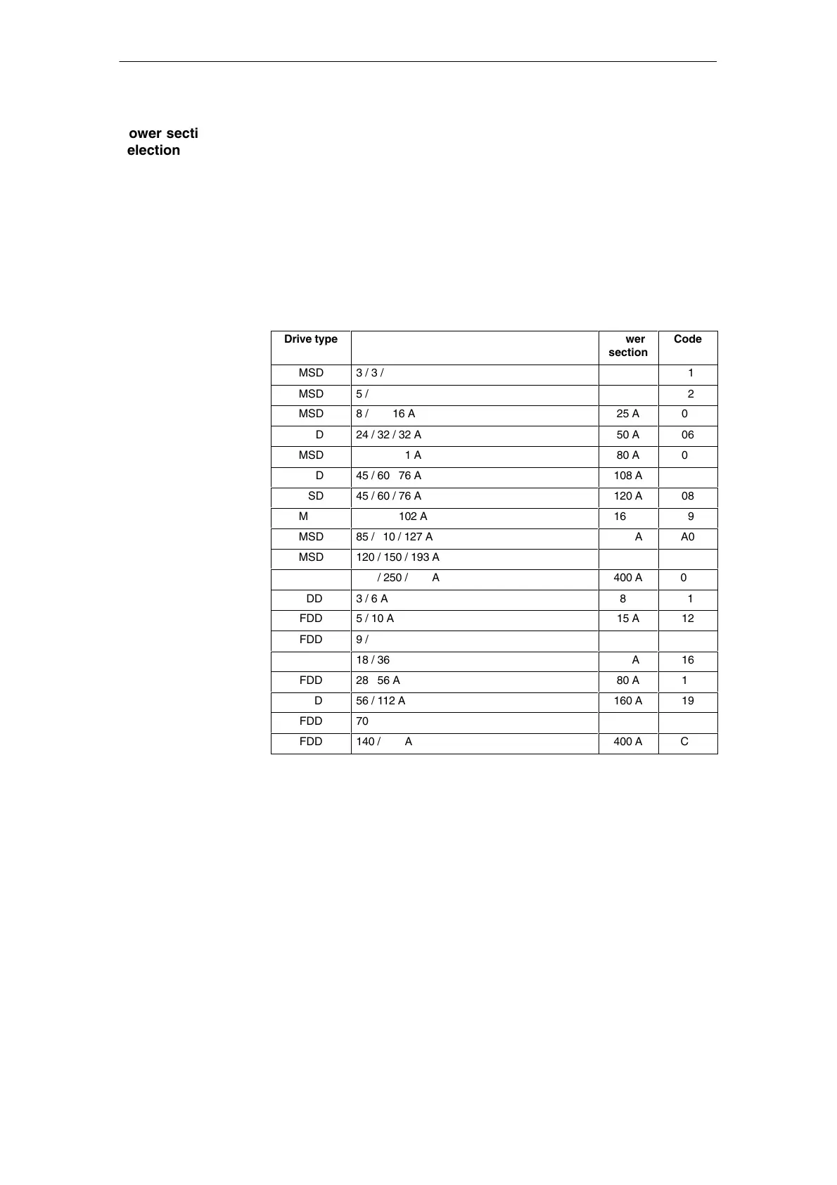 Table 6-9 Assignment of drive/power section/power section code