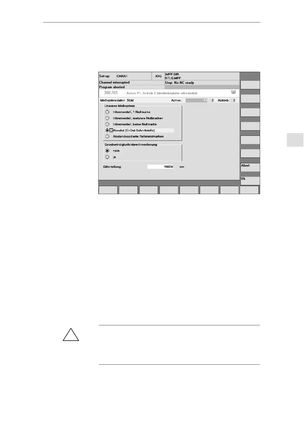 – In “Linear measuring system” field: Select absolute (EnDat interface)