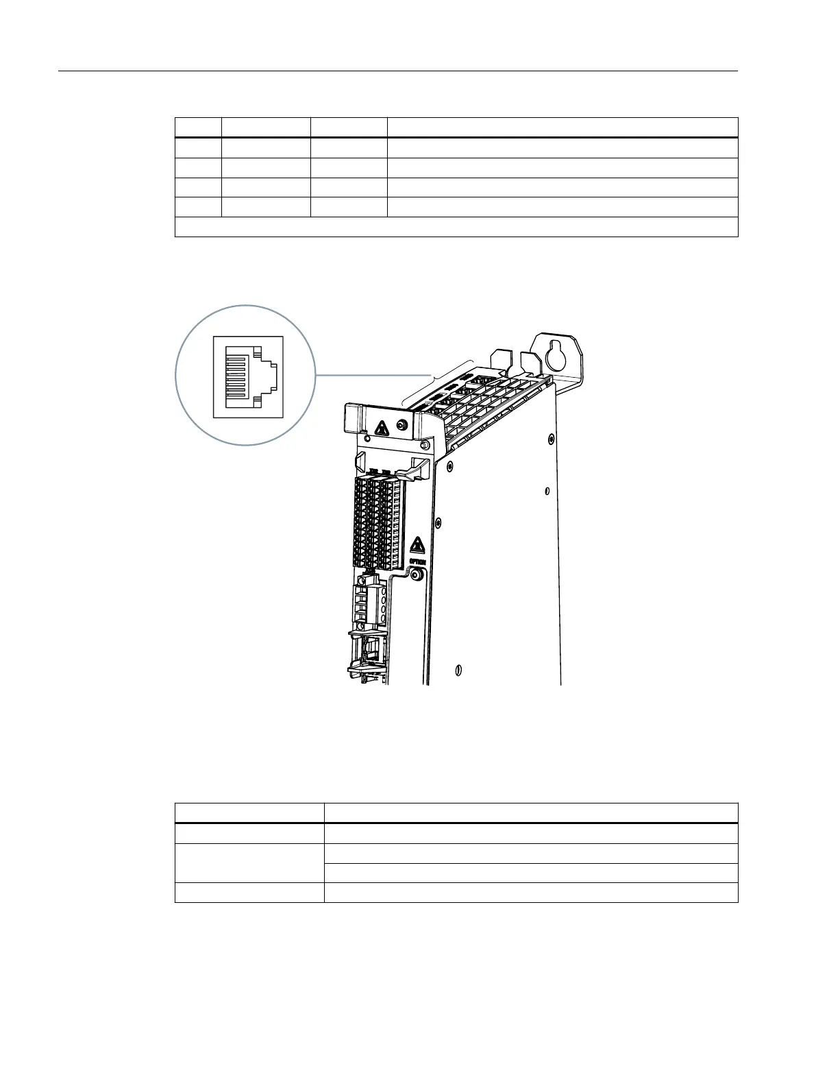 A + (24 V) VO Voltage supply for DRIVE-CLiQ, 450 mA maximum