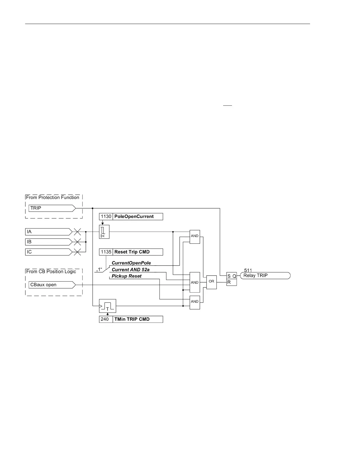 setting in address 1130 PoleOpenCurrent (see above). If Current AND 52a is set, the circuit-breaker