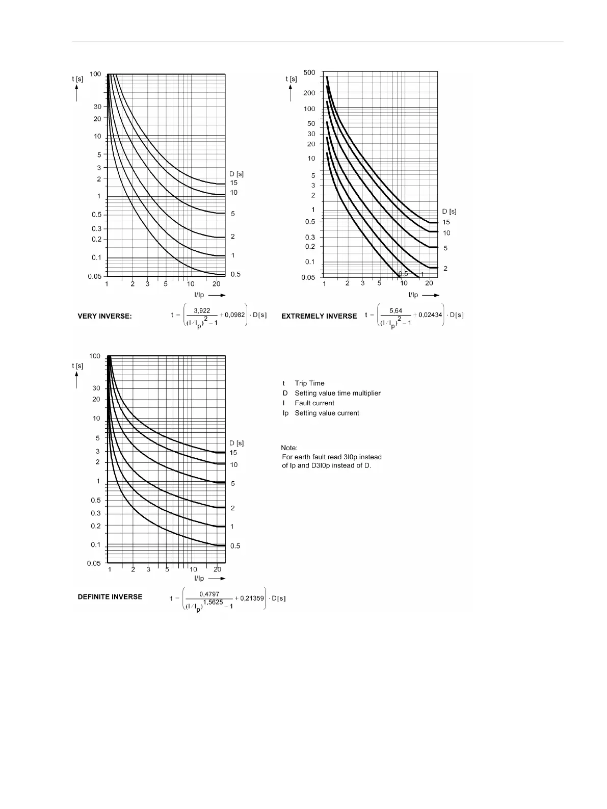 Trip time characteristics of inverse time overcurrent element, acc. ANSI/IEEE (phases and