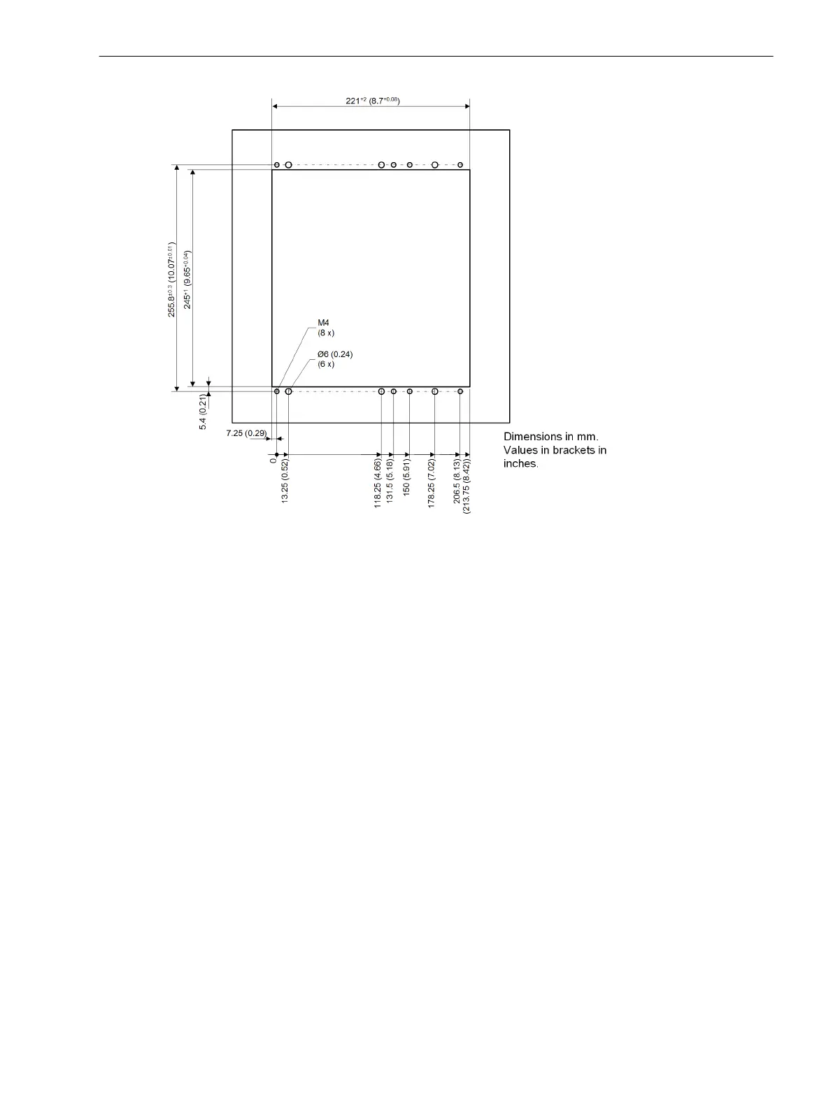 Cut-out Widths and Drilling Pattern - 1/2 Device, 1st Device Row