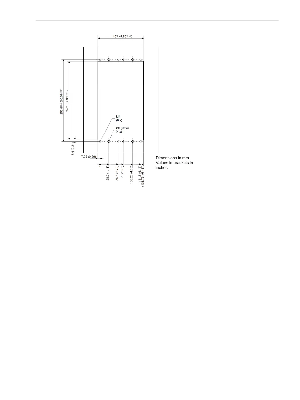 Cut-out Widths and Drilling Pattern - 1/3 Device, 2nd Device Row