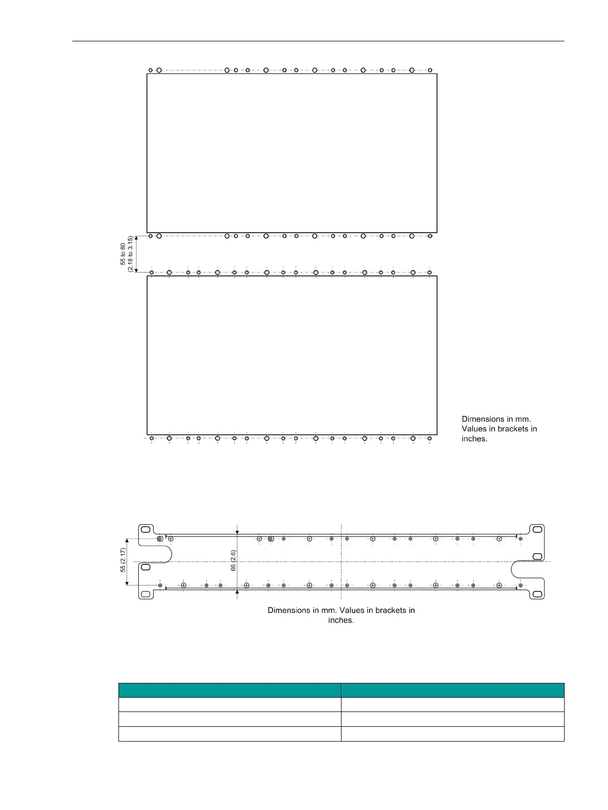 Siemens recommends a hole spacing of at least 55 mm (2.17 in) between the 1st and 2nd device rows. The