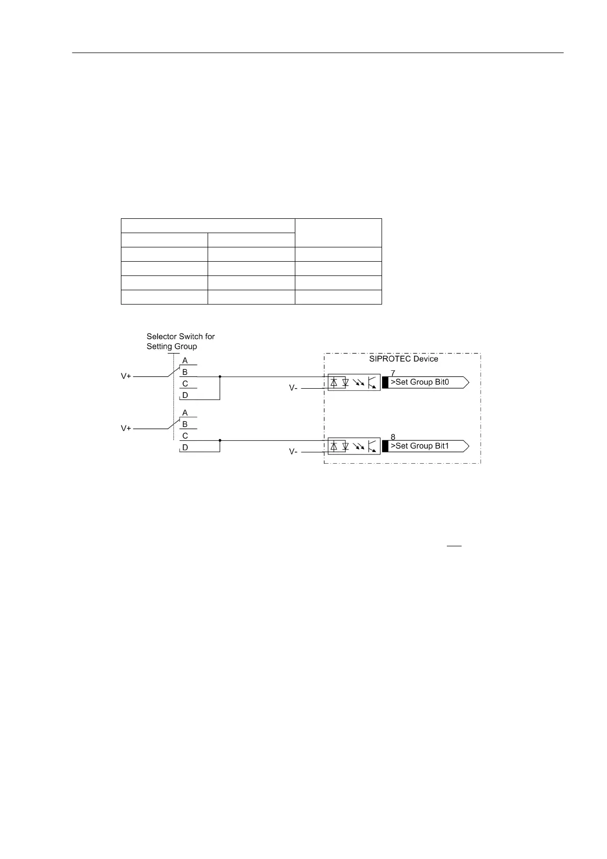 The following table shows the allocation of the binary inputs to the setting groups A to D and a simplified con-