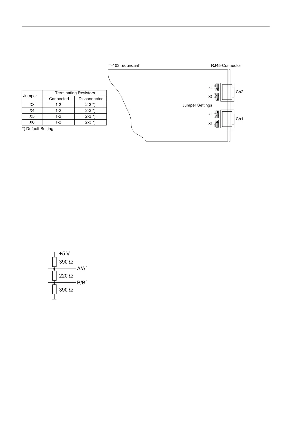 With default setting the jumpers are set such that the terminating resistors are disconnected. Both jumpers of