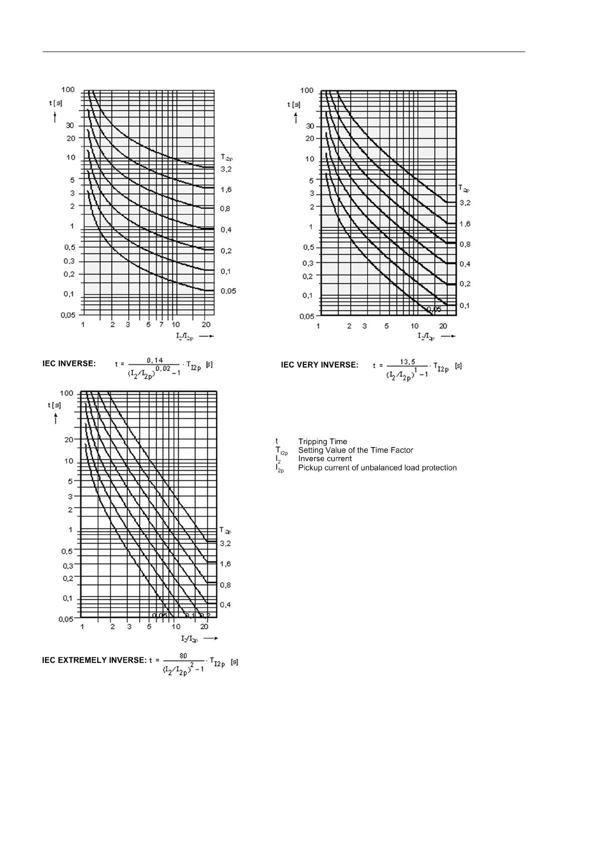 Figure 4-7 Trip time characteristics of the inverse time negative sequence element 46-TOC, acc. to IEC
