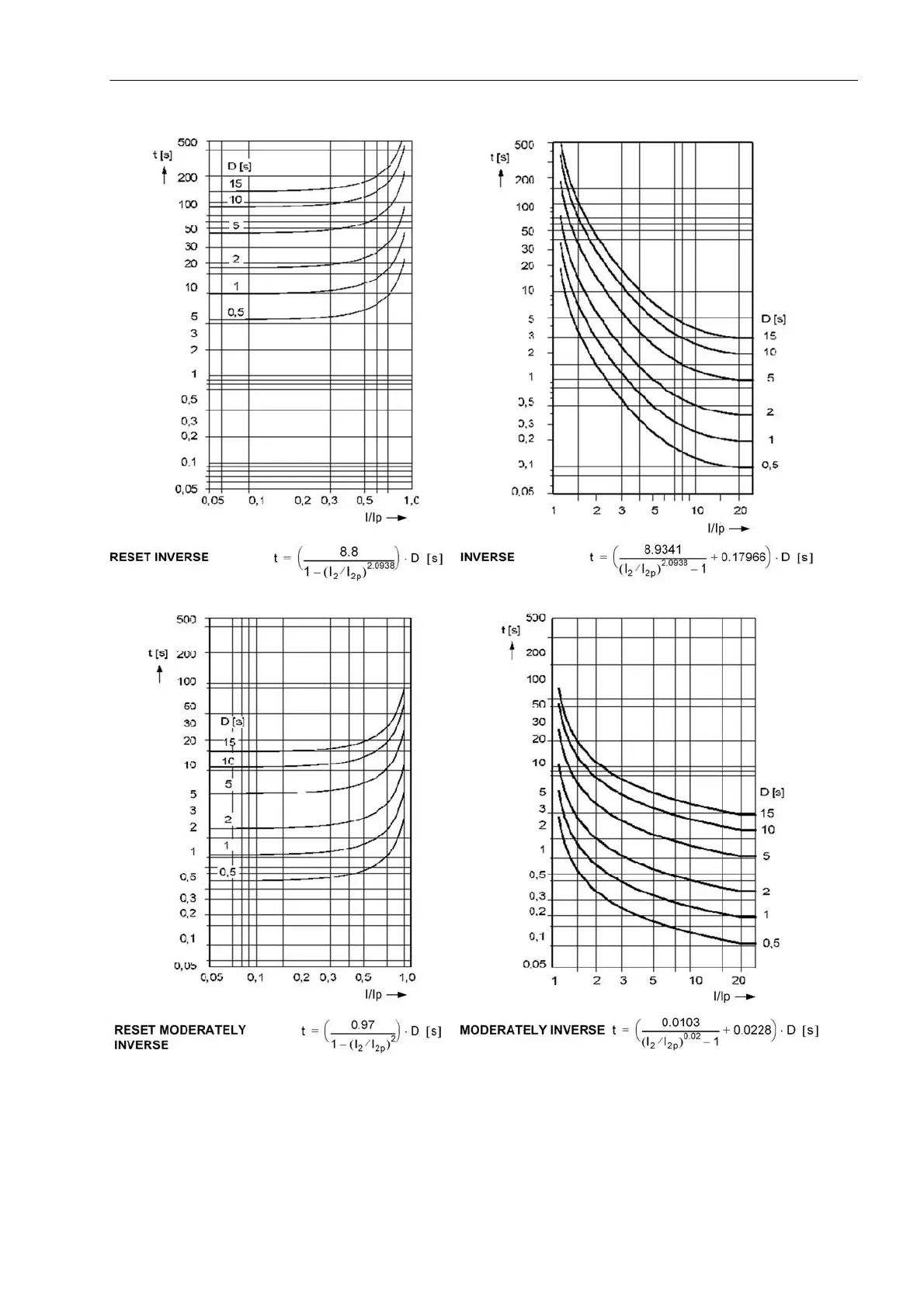 Figure 4-8 Dropout time and trip time characteristics of the inverse time unbalanced load stage, acc. to ANSI