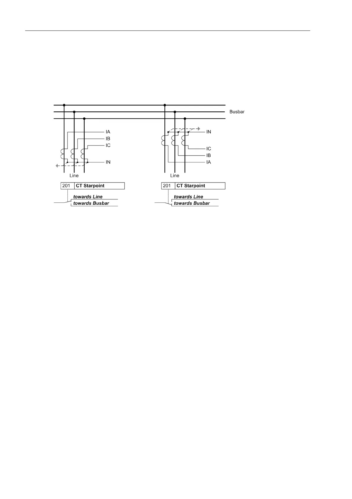 lowing figure applies accordingly to two current transformers). This setting determines the measuring direction