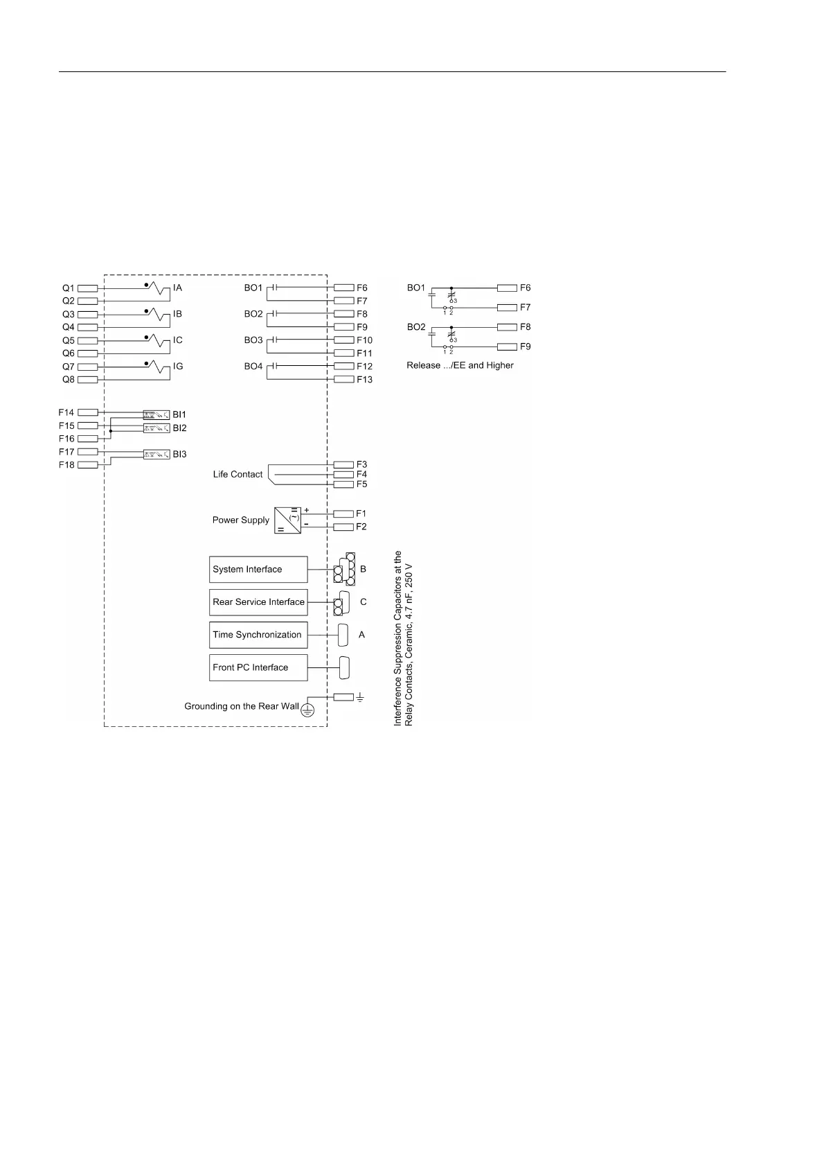 Figure A-1 Connection diagram for 7SJ610*–*D/E (panel flush mounted or cubicle mounted)