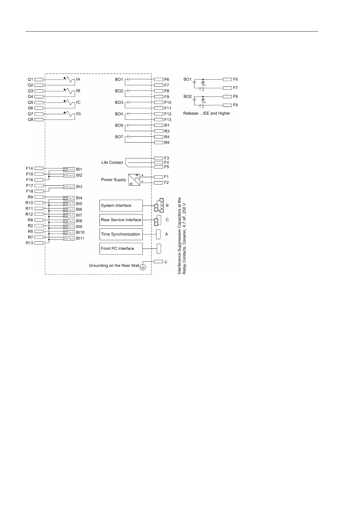 Figure A-3 Connection diagram for 7SJ612*–*D/E (panel flush mounted or cubicle mounted)
