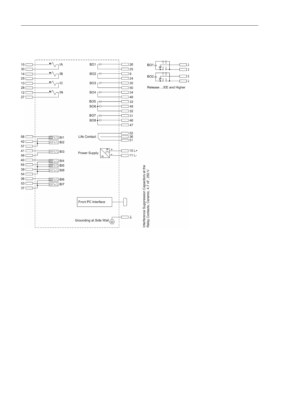 Figure A-5 Connection diagram for 7SJ611*–*B (panel surface mounted)