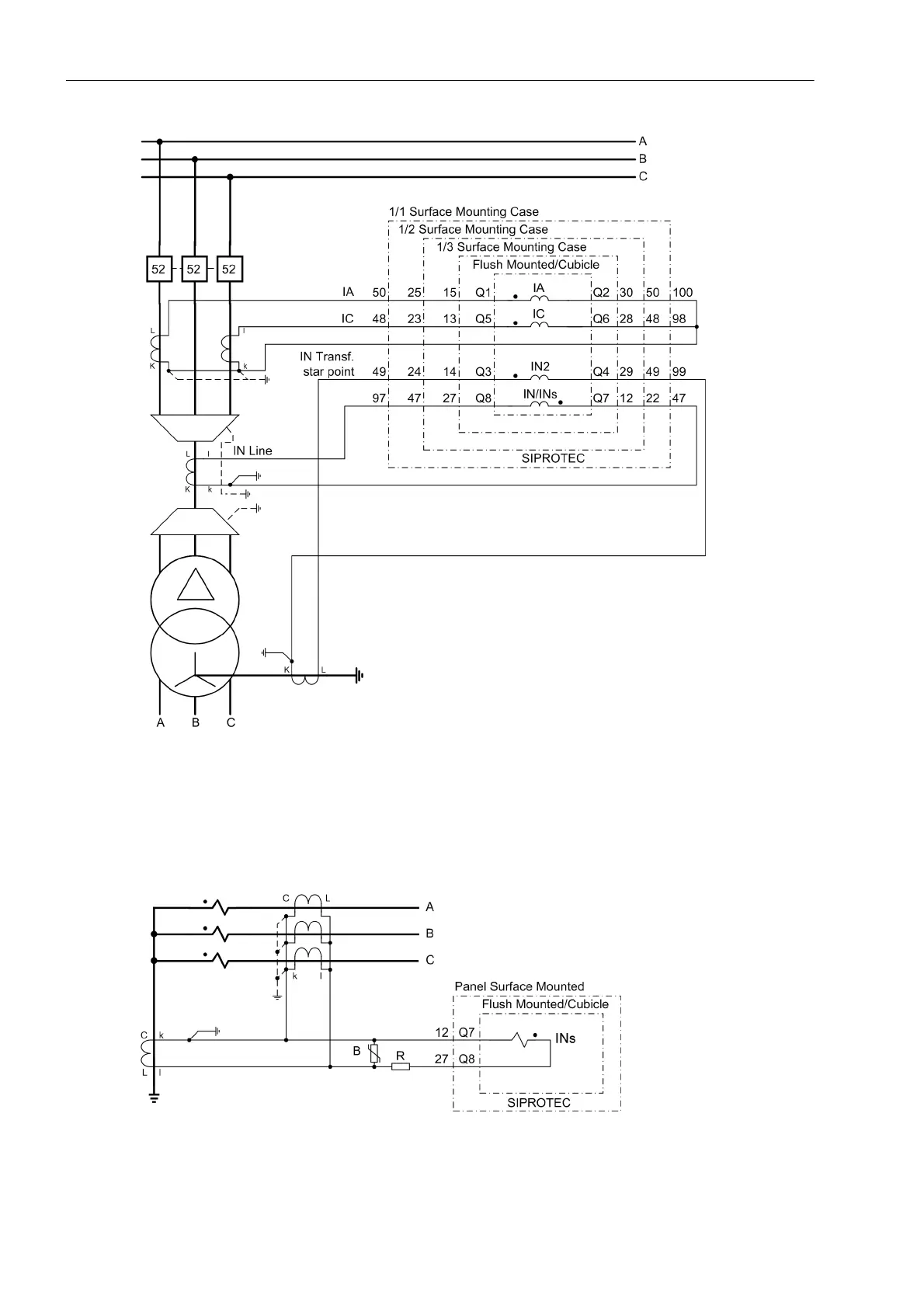 Figure A-14 Current transformer connections to two phase currents and two ground currents;