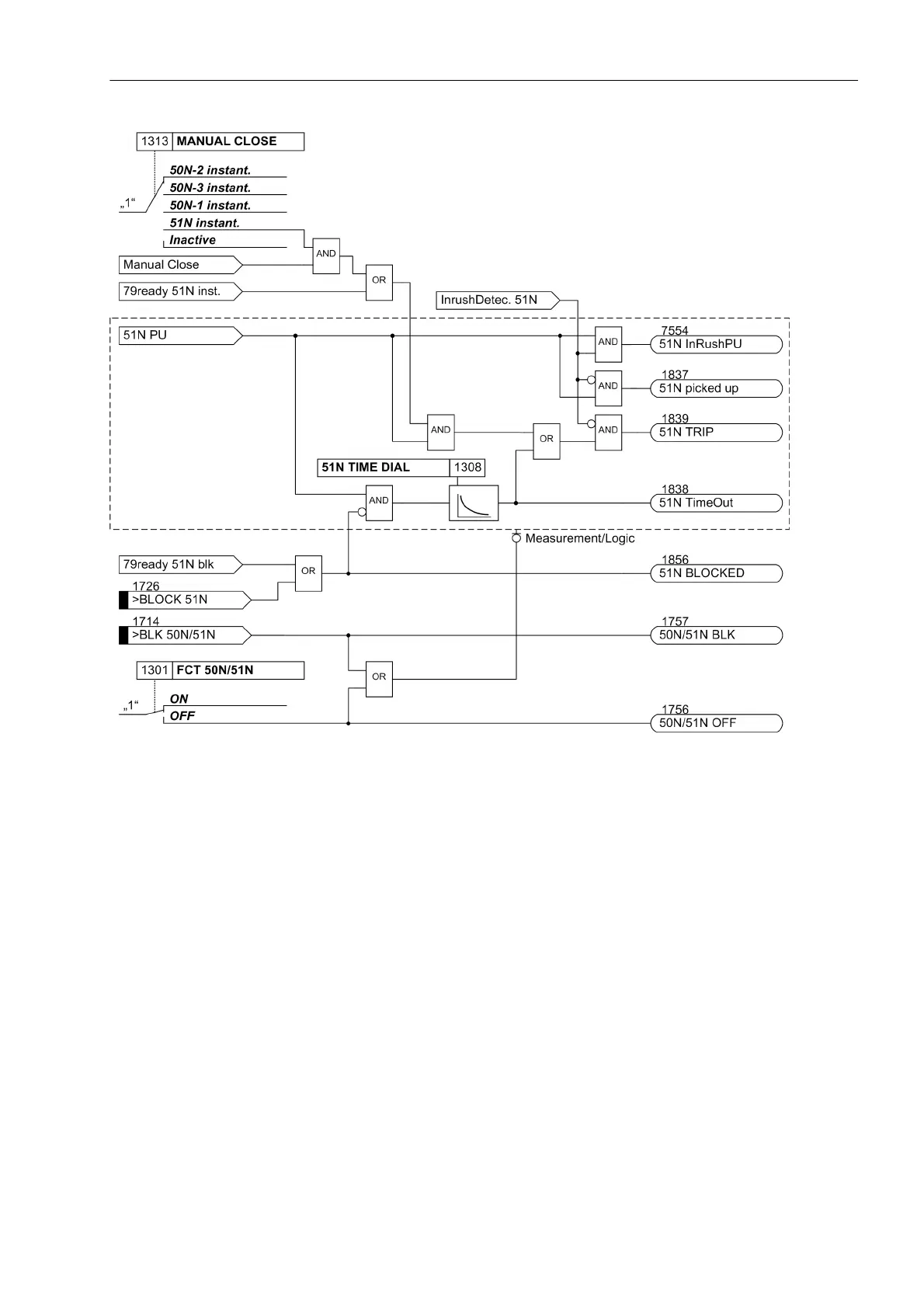 If parameter MANUAL CLOSE is set to 51N instant. and manual close detection applies, the trip is initiated