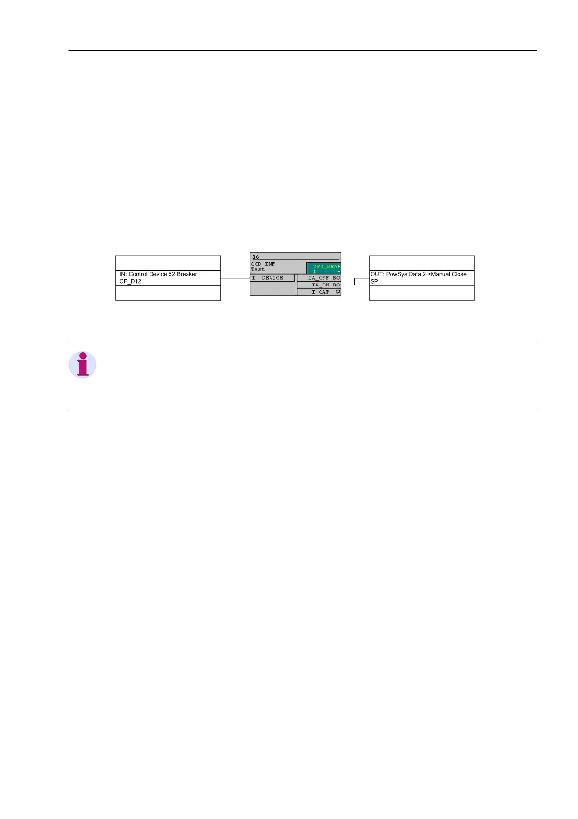 binary input, and configured accordingly („>Manual Close“), so that the element selected for MANUAL