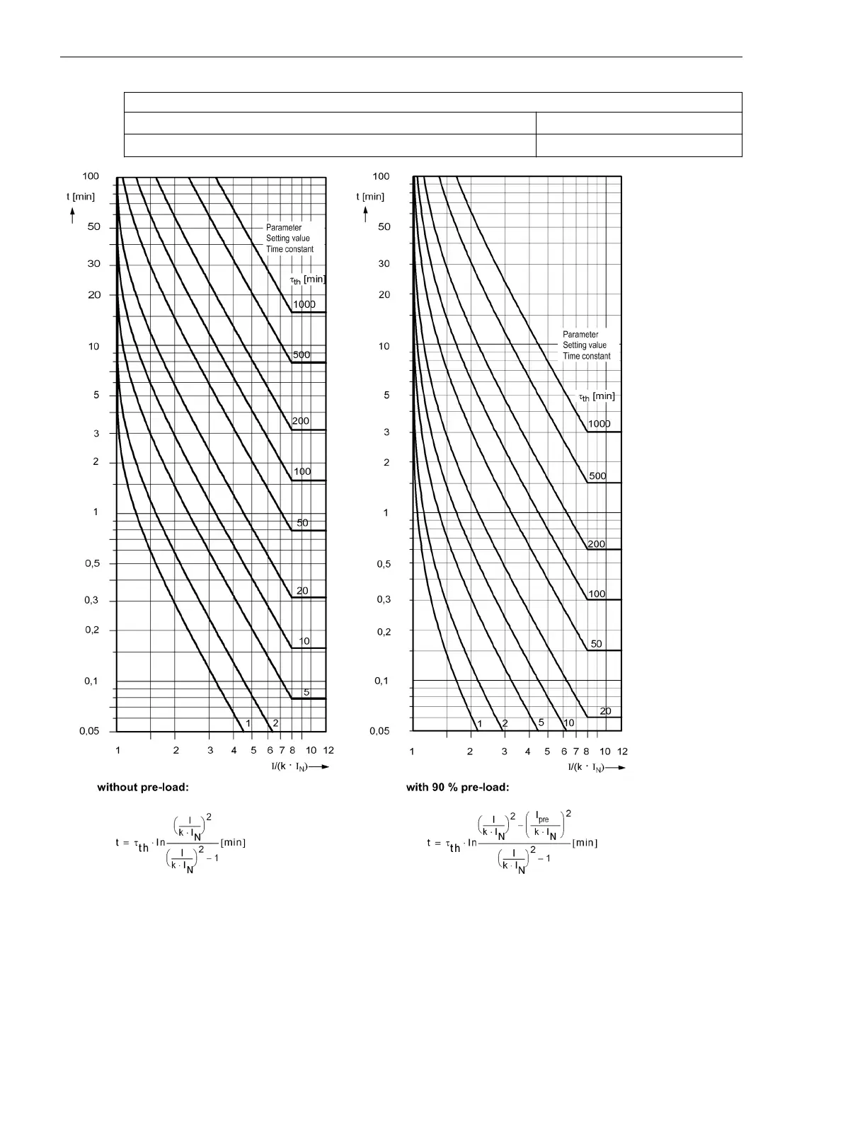 Trip time curves for the thermal overload protection (49)
