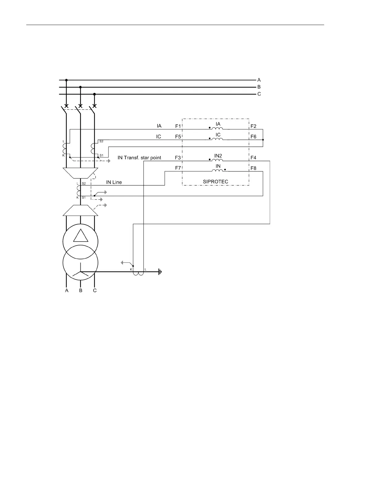 ground current of the line, IN2 – ground current of the transformer starpoint