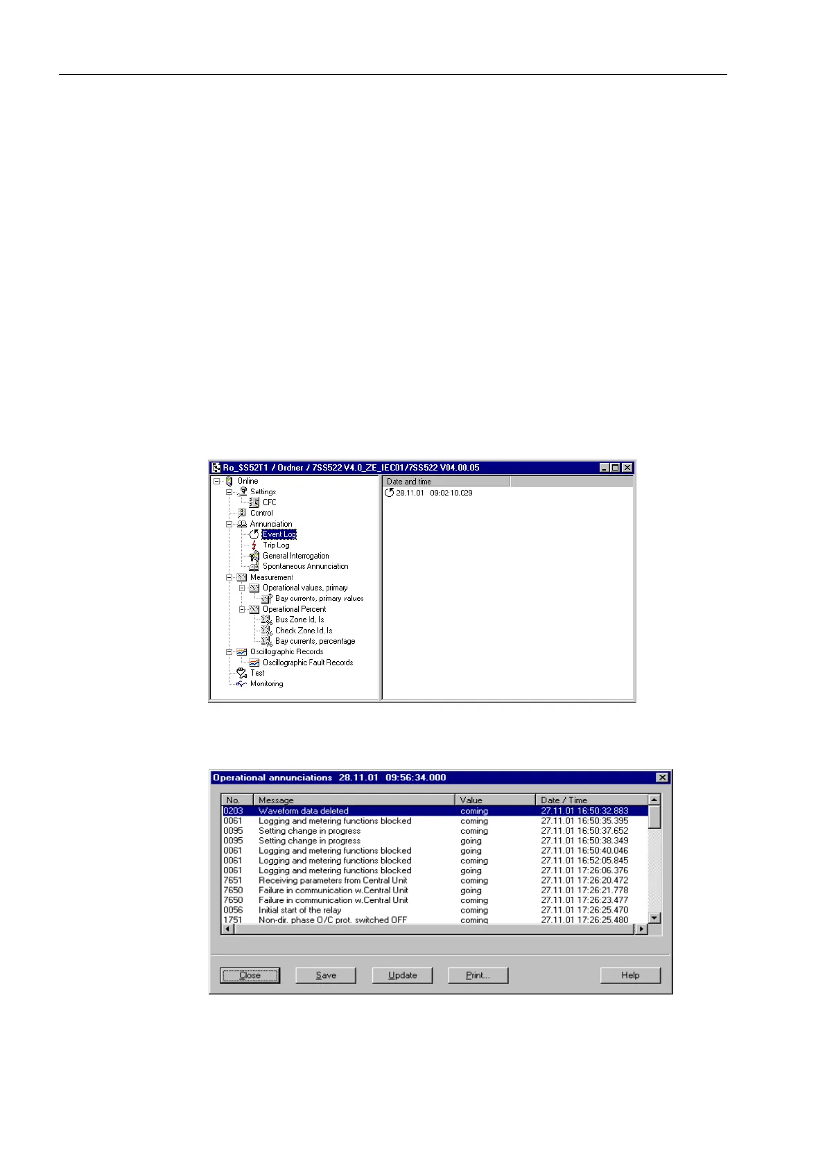 Figure 6-3 Examples of operational annunciations in DIGSI