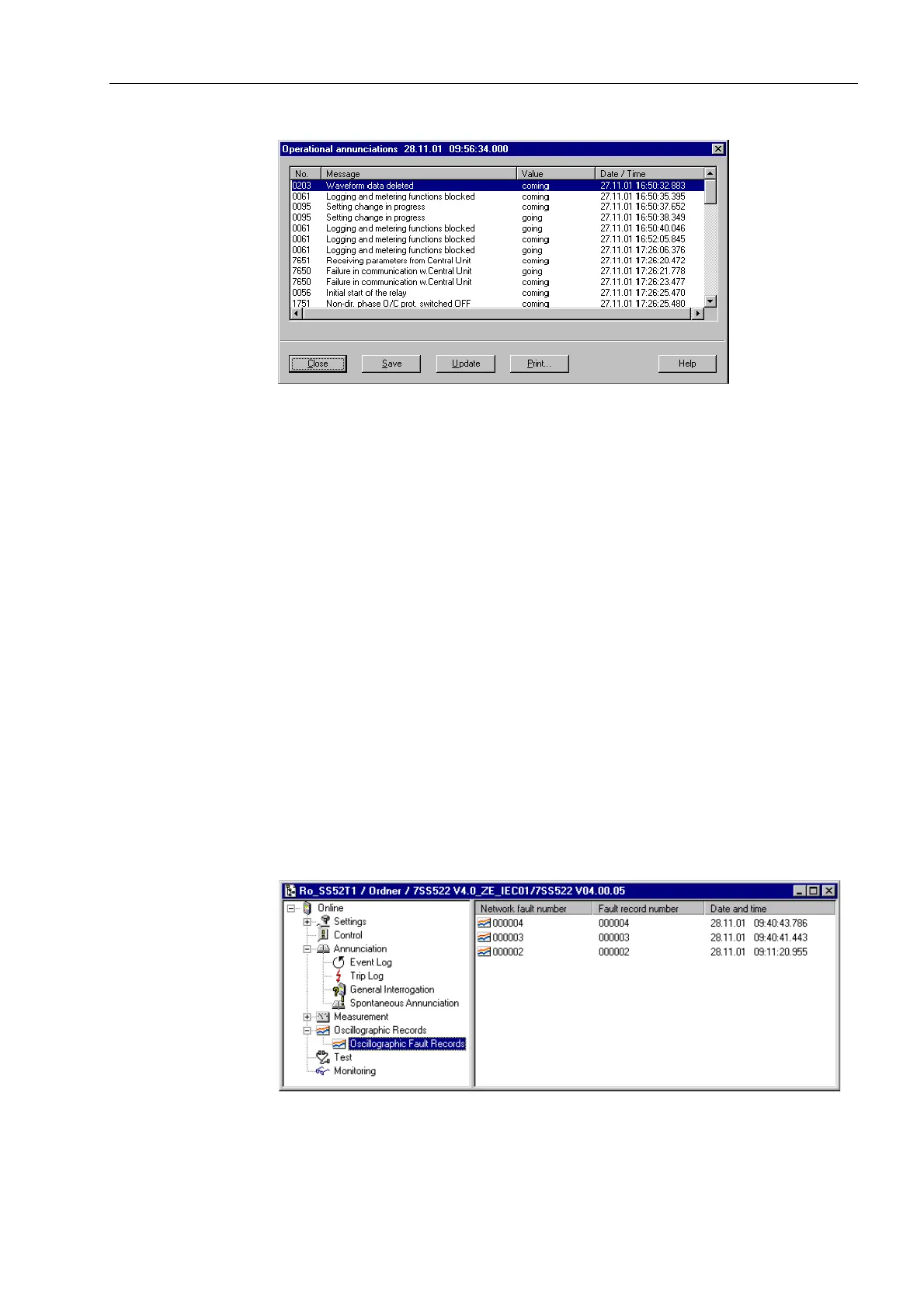 Click Oscillographic Records in the navigation window. The subdirectory of the