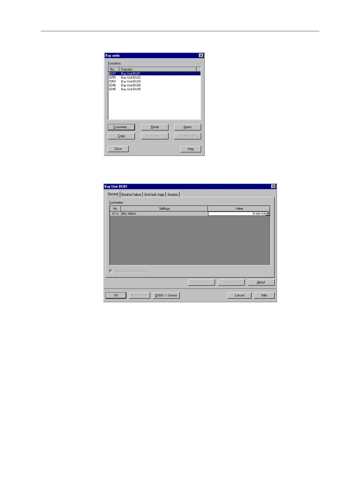 To put a single bay for the busbar protection out of or into service at the bay unit (PC
