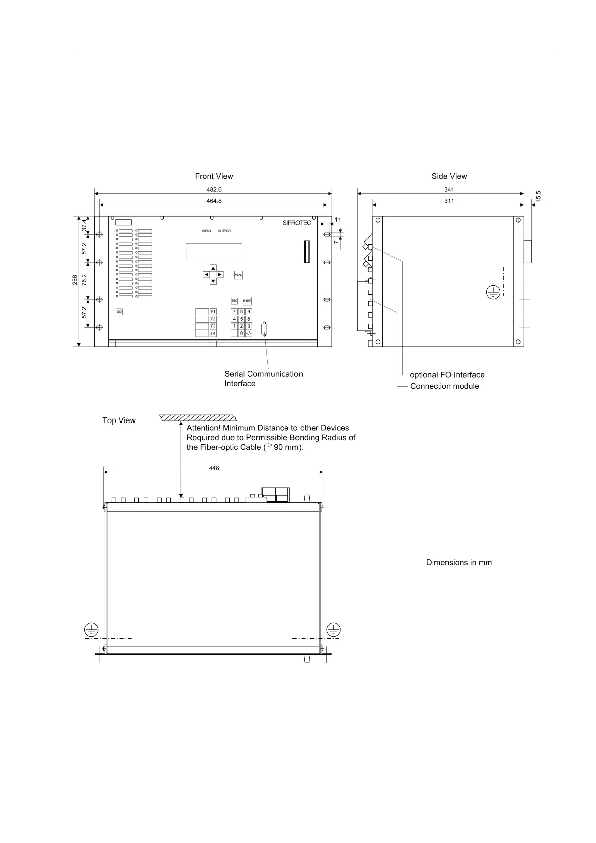 Figure 9-2 Mechanical dimensions of the subrack