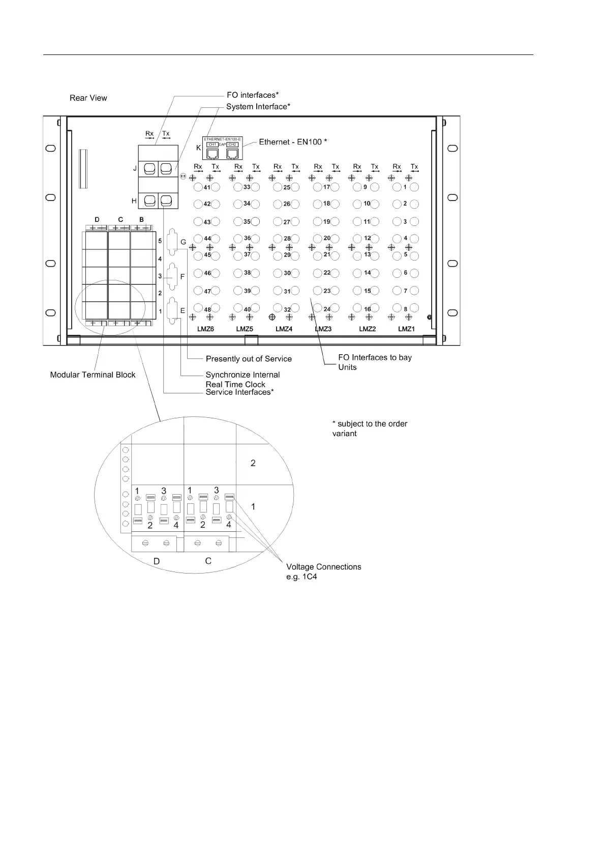 Figure 9-3 Connection plugs (rear view) of the subrack