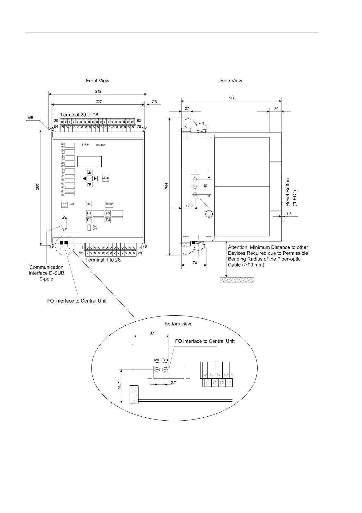Figure 9-5 Dimensional drawing of 7XP2040-1 for panel surface mounting 7SS523 (all dimensions in mm)