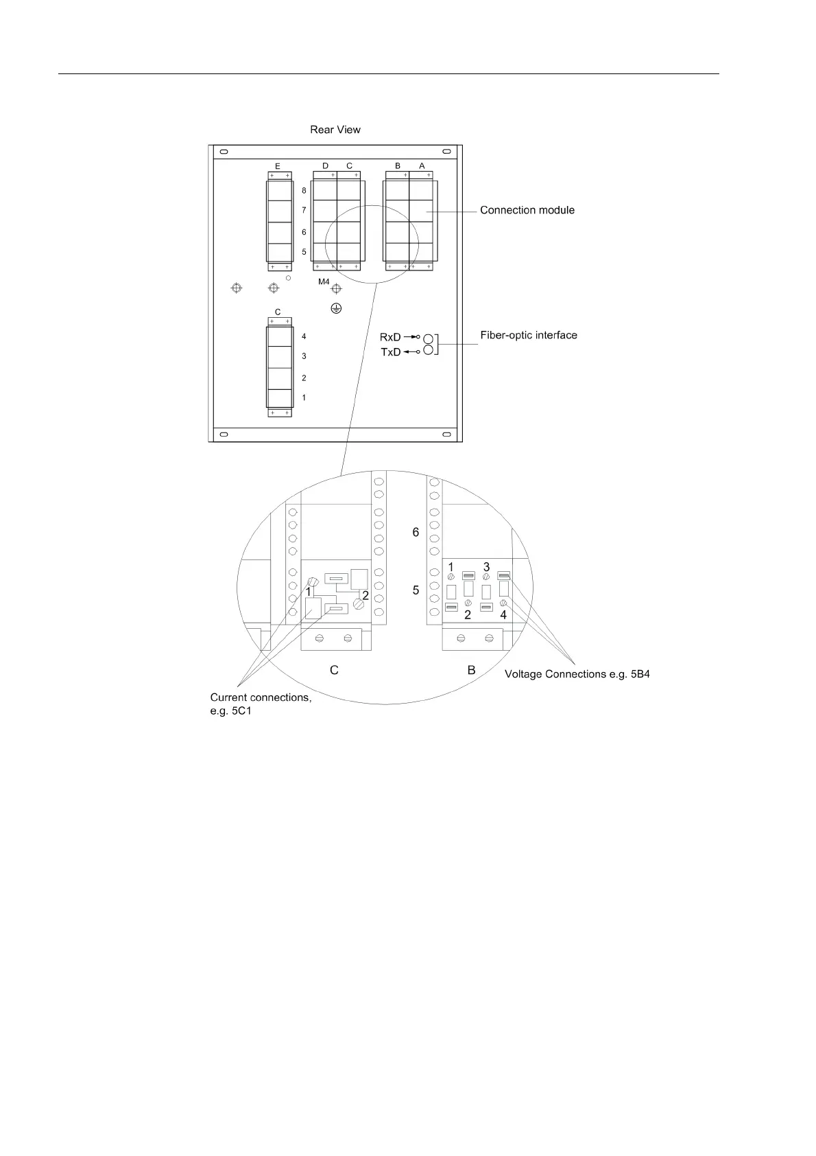 Figure 2-8 Device connections on bay unit for panel flush mounting or cubicle mounting